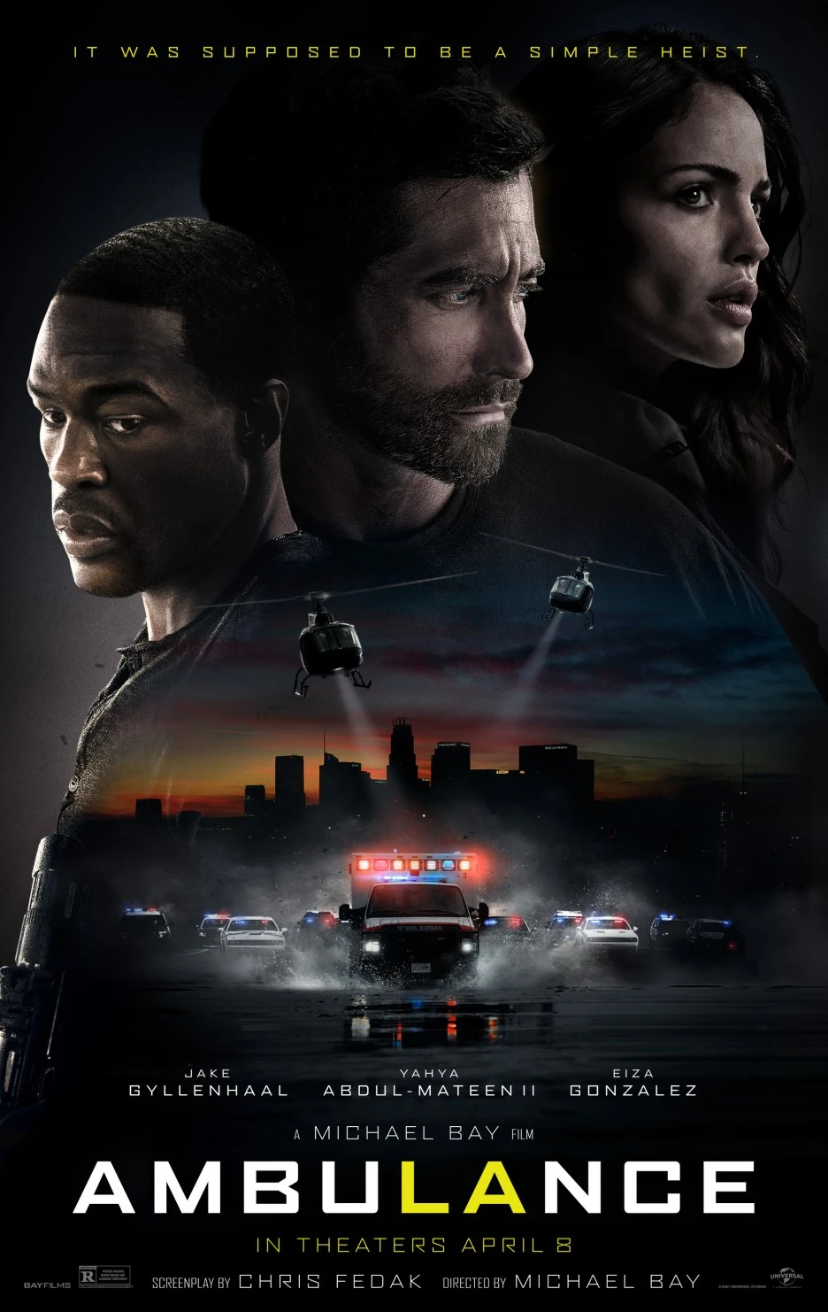 2019년 <6 언더그라운드>로 한국을 찾기도 했던 마이클 베이 감독이 3년만에 돌아왔습니다. 야히아 압둘 마틴 2세, 제이크 질렌할, 에이사 곤살레스가 뭉친 <앰뷸런스>죠. 로리츠 먼치-피터슨 감독의 2005년 동명 영화를 원작으로 삼았다는데, 정작 마이클 베이 본인은 자신만의 <앰뷸런스>를 만들기 위해 그 영화를 보지도 않았다고 하니 이걸 원작이라고 부를 수 있을지도 모르겠습니다.