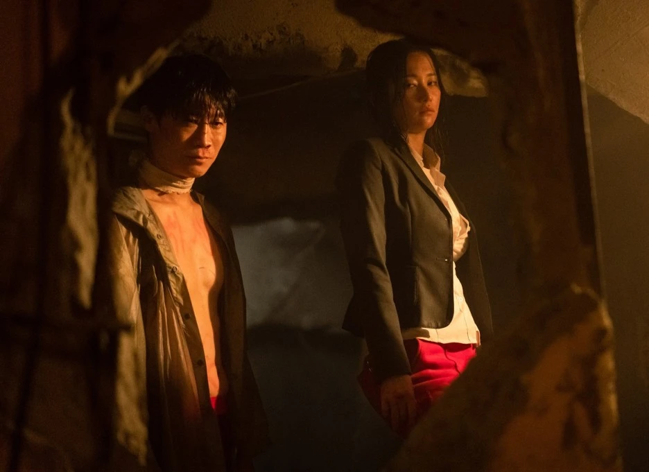 아주 많지는 않은 등장인물들의 가운데엔 진선규의 형수와 전종서의 주영이 있습니다. 이들은 처음 만나는 순간부터 각자의 모든 것을 의도적으로 숨긴 사이입니다. 이름이나 직업은 물론 서로의 목적이나 정체마저도 베일에 싸여 있죠. 이후 벌어지는 재난 상황을 전제한 수 싸움은 아니었지만, 결과적으로 위치하게 된 아비규환에서 의지할 곳은 차라리 초면인 사이뿐입니다.