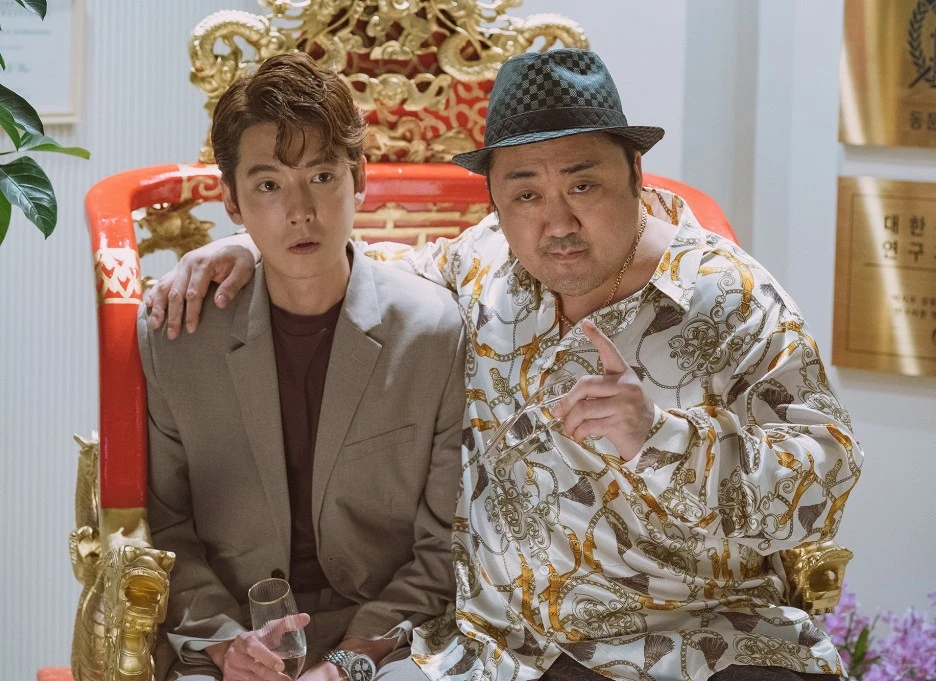 그 중심엔 누구도 이 사람이 도대체 무슨 일을 하는지는 알지 못하지만 여기저기 들쑤시고 다니는 건 많은 한 남자가 있습니다. 요즘 <범죄도시> 시리즈를 하나의 세계관으로 확장시키고 있는 배우이자 빅편치 엔터테인먼트 대표로 바쁜 나날을 보내고 있는 마동석 그 자체처럼 보이는, 대표님을 한 명의 깜찍한 캐릭터로 그려낸 것처럼 보이는 남자 강대국이죠.