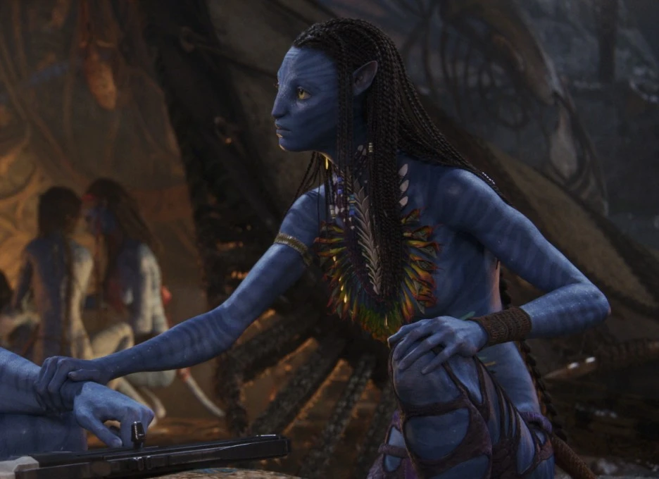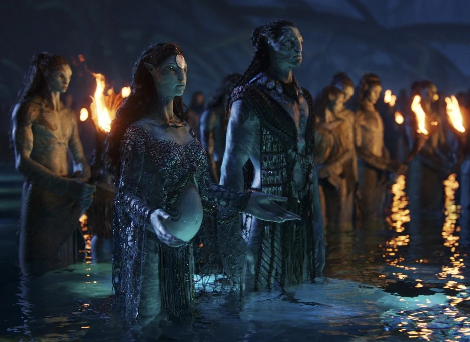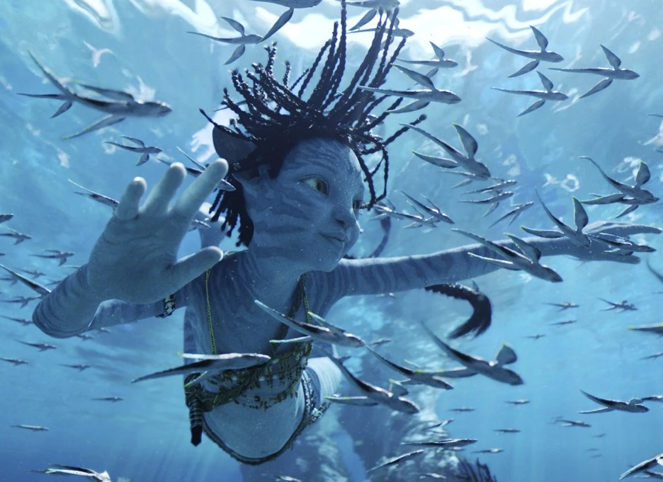 그렇게 돌아온 <아바타: 물의 길>은 다시 한 번 새로운 볼거리로 중무장했습니다. 1편 오마티카야 족이 숲의 사람들이었다면, 2편에 새로이 등장하는 멧카이나 족은 바다의 사람들이죠. 중심부의 거대한 나무를 둘러싸고 하나의 유기체처럼 숨쉬었던 황홀함은 그대로 바다로 옮겨갔습니다. 가장 작은 것부터 가장 거대한 것까지 하나의 악보 위에서 춤추는 물의 생태계가 눈 앞에 펼쳐지죠.
