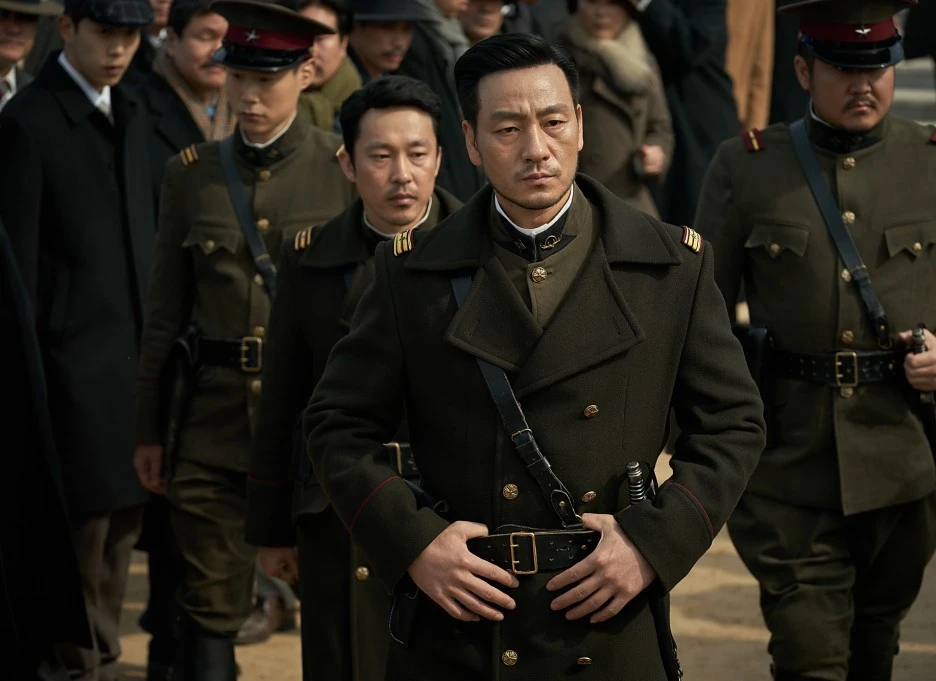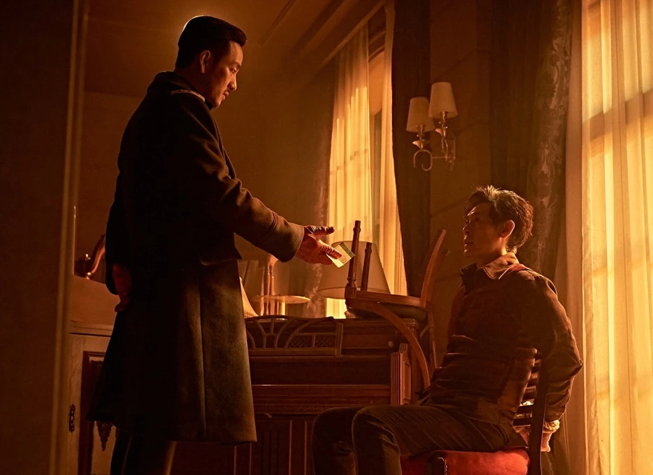 그런데 <유령>은 초장부터 다른 노선을 타고자 합니다. 조선총독부를 안에서부터 무너뜨리려는 흑색단이라는 조직이 있고, 그 흑색단에서 파견한 스파이가 바로 유령이죠. 하지만 영화는 딱히 유령의 정체를 숨기는 데에 관심이 없어 보입니다. 비슷한 설정을 차용한 다른 영화라면 최소한 뒷모습, 그림자 등으로 유령의 정체를 숨기면서 출발하는 것이 전개의 전제가 되어야 할 것입니다.