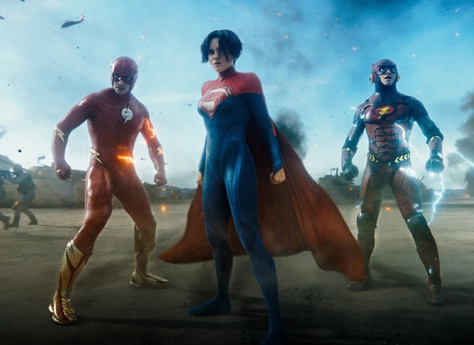 그러나 마냥 찬사만 보내기엔 언급한 장점들을 제외한 부분에서 나오는 단점들도 무시하기 어렵습니다. 가장 먼저 눈에 들어오는 것은 충격적인 CG죠. 근래 <블랙 팬서 2>, <앤트맨 3>, <트랜스포머: 비스트의 서막> 등에서도 같은 회사의 십수 년 전 작품들에 비해서도 CG 수준이 하향 평준화되었다는 이야기가 많은데, <플래시>는 그 모든 영화들을 뛰어넘고도 남습니다.