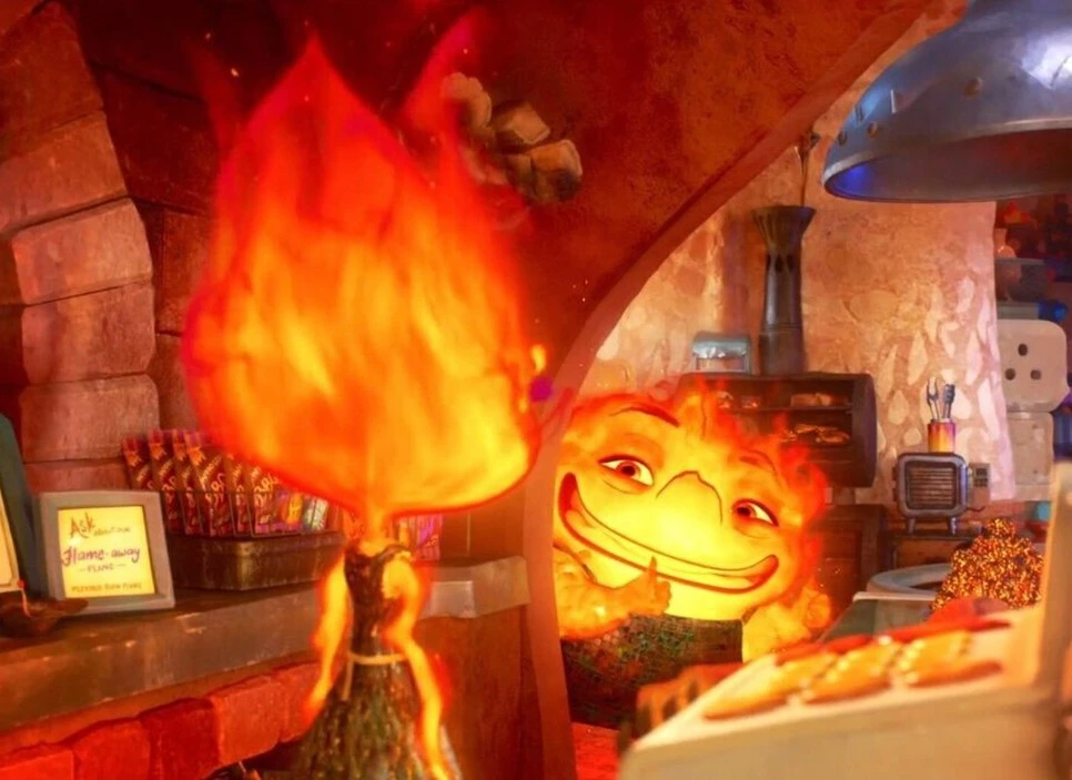 얼핏 <라따뚜이>, <주토피아>와 비슷해 보입니다. 태어날 때부터 정해져 있는, 최소한 세상이 그렇다고 이야기하는 것으로부터 벗어나려는 당찬 인물을 주인공으로 두고 있죠. <엘리멘탈>에서는 불로 태어나 다른 원소들의 괄시와 멸시를 받는 동시에, 엘리멘트 시티로 이민을 와서 차린 가게를 가업으로 물려주고픈 아버지 밑에서 자라난 엠버가 그 자리에 있습니다.