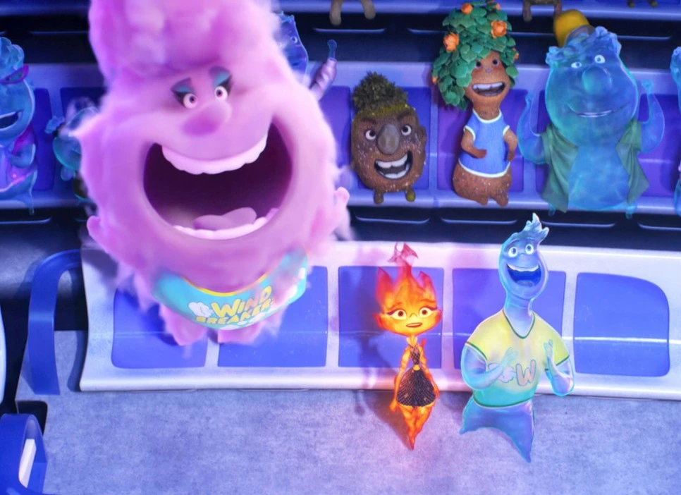 2015년 <굿 다이노>를 내놓은 피터 손 감독이 8년만에 메가폰을 잡은 <엘리멘탈>입니다. 레아 루이스, 마무두 아티, 로니 델 카르멘, 쉴라 옴미, 웬디 맥렌든-코비, 캐서린 오하라 등이 목소리 연기를 맡았죠. 전작이 2억 달러를 들여 3억 3천만 달러라는 실망스러운 성적을 거두었음에도 불구하고, 또 다시 2억 달러의 제작비를 들인 블록버스터로 돌아왔습니다.