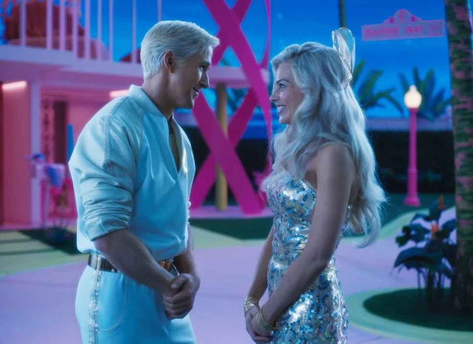 바로 이 지점이 이번 <바비>의 모든 것입니다. 마고 로비와 라이언 고슬링의 몸을 빌어 장난감인 바비와 켄이 살아 움직이는 모습, 형형색색의 바비랜드가 선사하는 분홍색 볼거리 등 마치 영화의 정체성을 방불케 했던 시각적인 재미는 영화의 초반부에 끝이 납니다. 오히려 거기에 무게를 실어 눈과 귀가 즐거울 영화를 기대한다면 아주 크게 벗어날 가능성이 크죠.