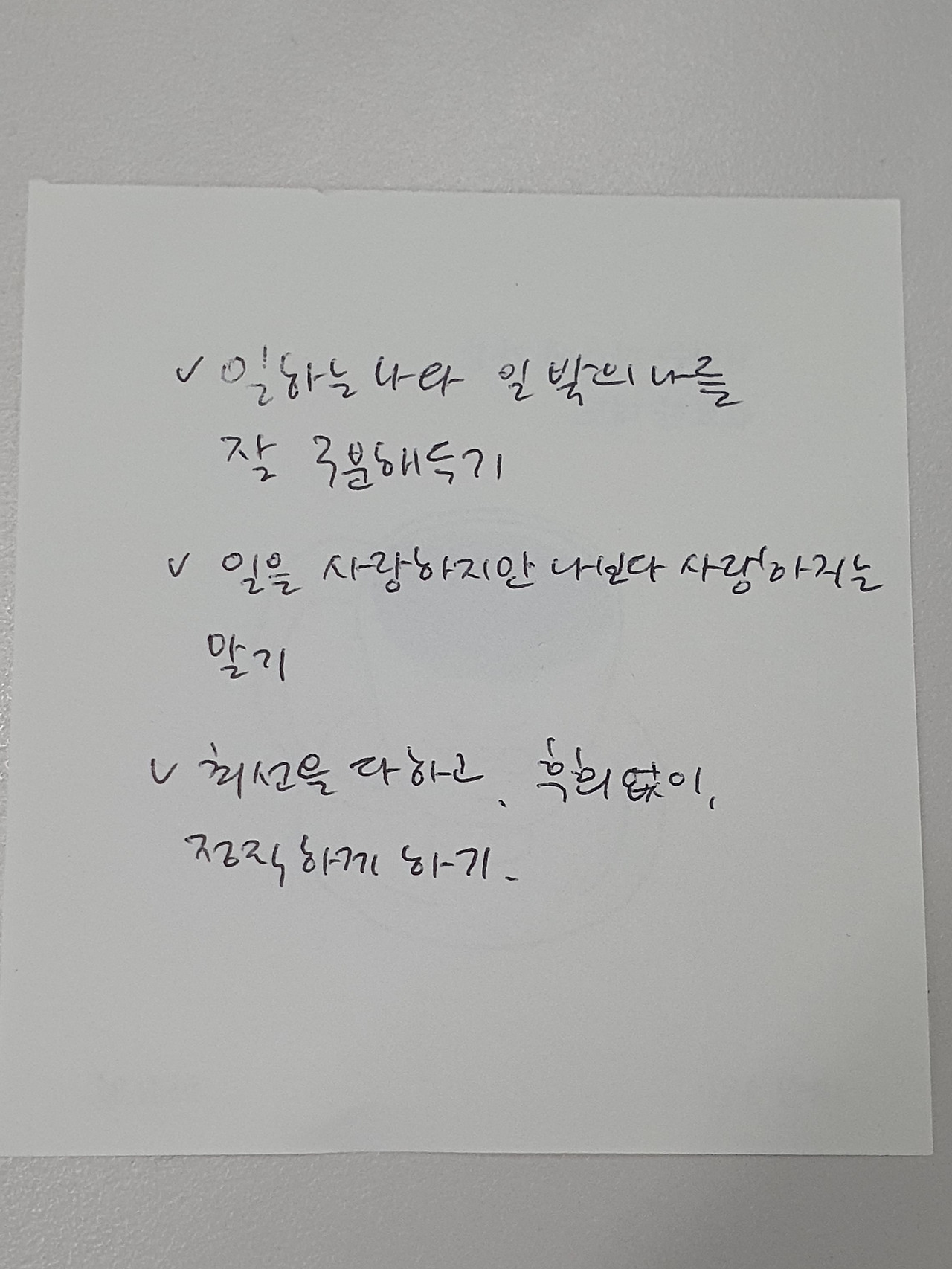 3. 최선을 다해 일하고, 후회 없이 일하고, 정직하게 일하기.