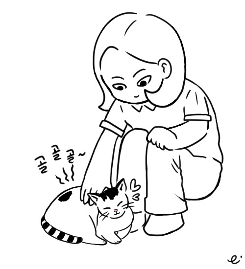 가끔 카페에 놀러 와요. 엄마나 카페 직원 언니오빠들은 일하느라 바빠서 자주 놀아주진 못 하는데, 진진이는 오면 하루 종일 놀아주니 반갑긴 해요. 자꾸 껴안으려 해서 조금 귀찮긴 하지만. 얘가 지금부터 저에 대한 글을 쓸 거래요. 절 좋아하는 줄은 알았지만 이 정도인 줄은 몰랐네요. 글 한 편 한 편 다 읽어보고 신랄한 비평을 해줄 생각이니, 눈물 콧물 쏙 뺄 준비나 하시길!