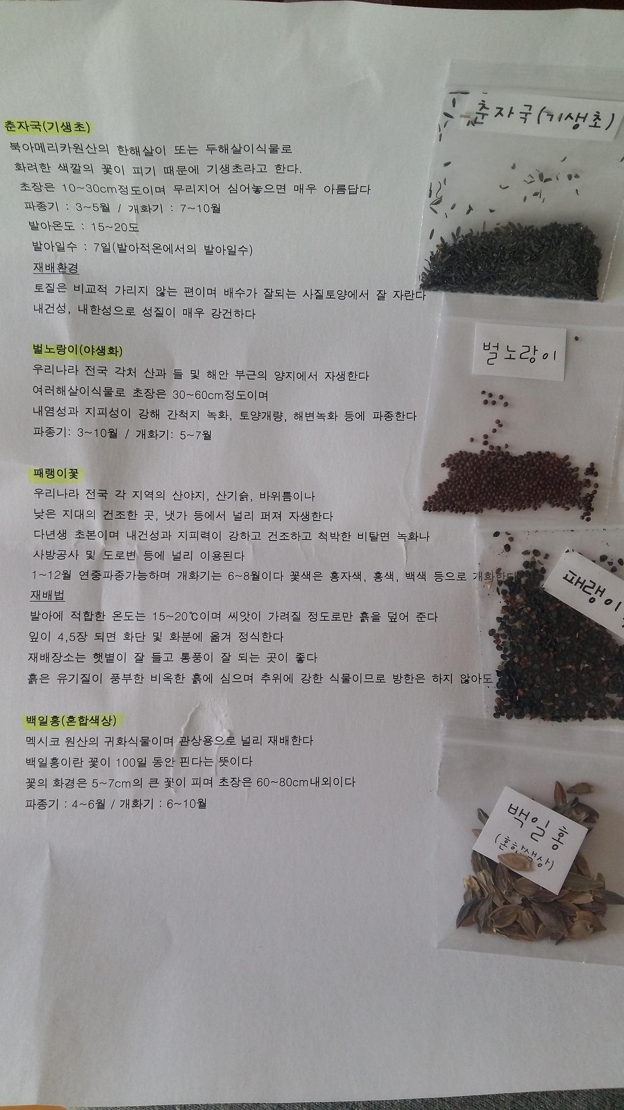 미선나무와 수서 해당화 나무를 얻어다 담 밑에 잘 심어놨다. 아직 꽃을 더 심어야 빈 공간이 다 채워지지만 천천히 조금씩 해나가기로 했다. 꽃씨를 사서 심어볼 요량으로 월동이 되는 야생화 위주로 주문했더니 오늘 도착했다. 예쁜 것들은 더 까다로워서 키우기가 훨씬 힘들어 실패할 확률이 높고 기다림의 시간도 곱절이나 길지만 예쁘니까 용서해주는 걸로 한다.