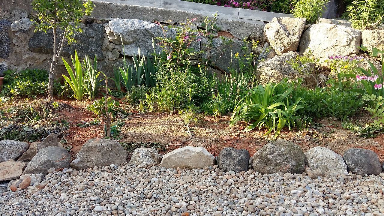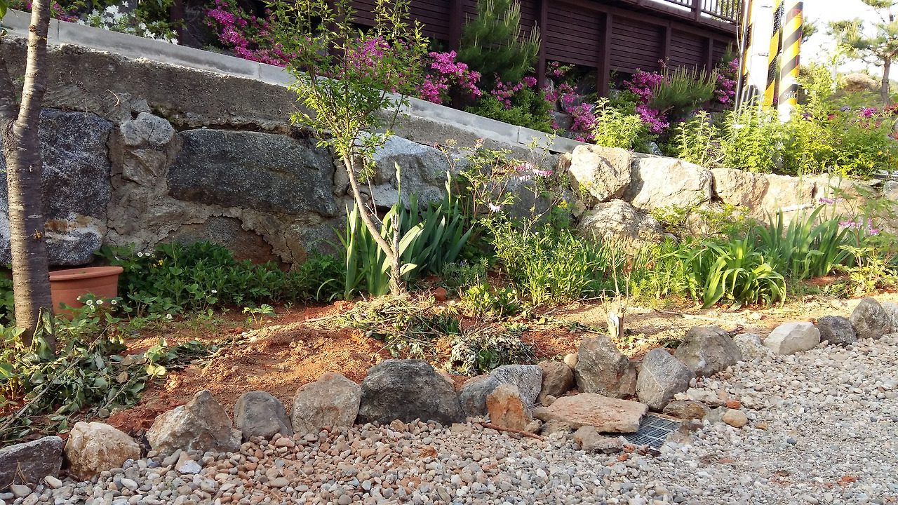 몇 해동안 밭작물을 키워봤으니 이제는 꽃 작물이다. 남편이 애를 써서 뒷마당의 화단 테두리를 만들어 주었다. 처음에는 작은 돌로 경계를 쌓았으나 이웃들의 성화로 큰 돌로 다시 바꾸었다. 화단의 흙도 좀 더 채우고 돌을 큼직한 것으로 보기 좋게 쌓아놔야 꽃을 나누어 주겠다니 무거운 돌을 가져다 다시 쌓는 수고를 할 수밖에 없다. 안목이 남다른 이웃을 두면 게으른 사람도 어쩔 수 없이 부지런해지는 모양이다.