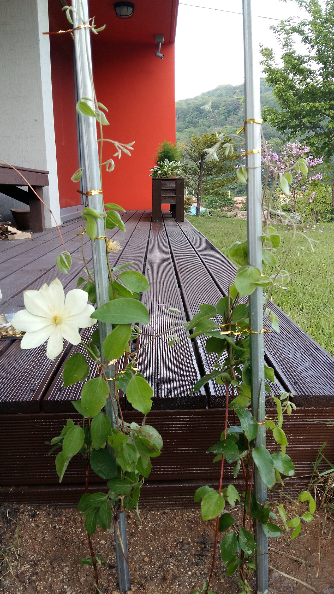 지난달에 쑥개떡을 만들려고 쑥을 캐다 보니 옆 농장까지 가게 되었을 때 언덕에서 큰 꽃 으아리를 발견했다. 하얗고 깨끗한 꽃을 보는 순간, 욕심이 나서 호미를 들고 캐기 시작했다. 자생한 것으로 짐작했으나 어느새 어르신이 다가와서 예전에 야생화 언덕을 만들어보려고 이것저것 많이 심어놓으신 것이라고 했다.