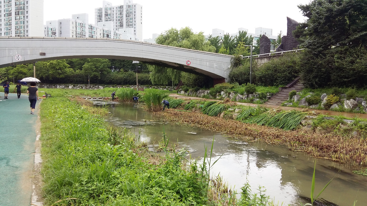 성내천 물가의 길게 자란 수초를 베는 작업을 하느라 몇 분이 낫으로 일을 하고 있었다. 장정들이 일을 하니 보기만 해도 든든했다. 내 집의 풀은 내 손이 안 가면 뽑을 수 없는데 도시의 풀은 구청에서 다 알아서 관리해주니까 걱정할 것이 없지 않은가. 성내천에서 이어진 올림픽공원으로 가면 더욱 감동적인 것이 커다란 나무와 깨끗한 잔디와 예쁜 꽃들이 계절마다 잘 손질되어 아름답게 단장되어 있어서 그냥 즐기기만 하면 된다.