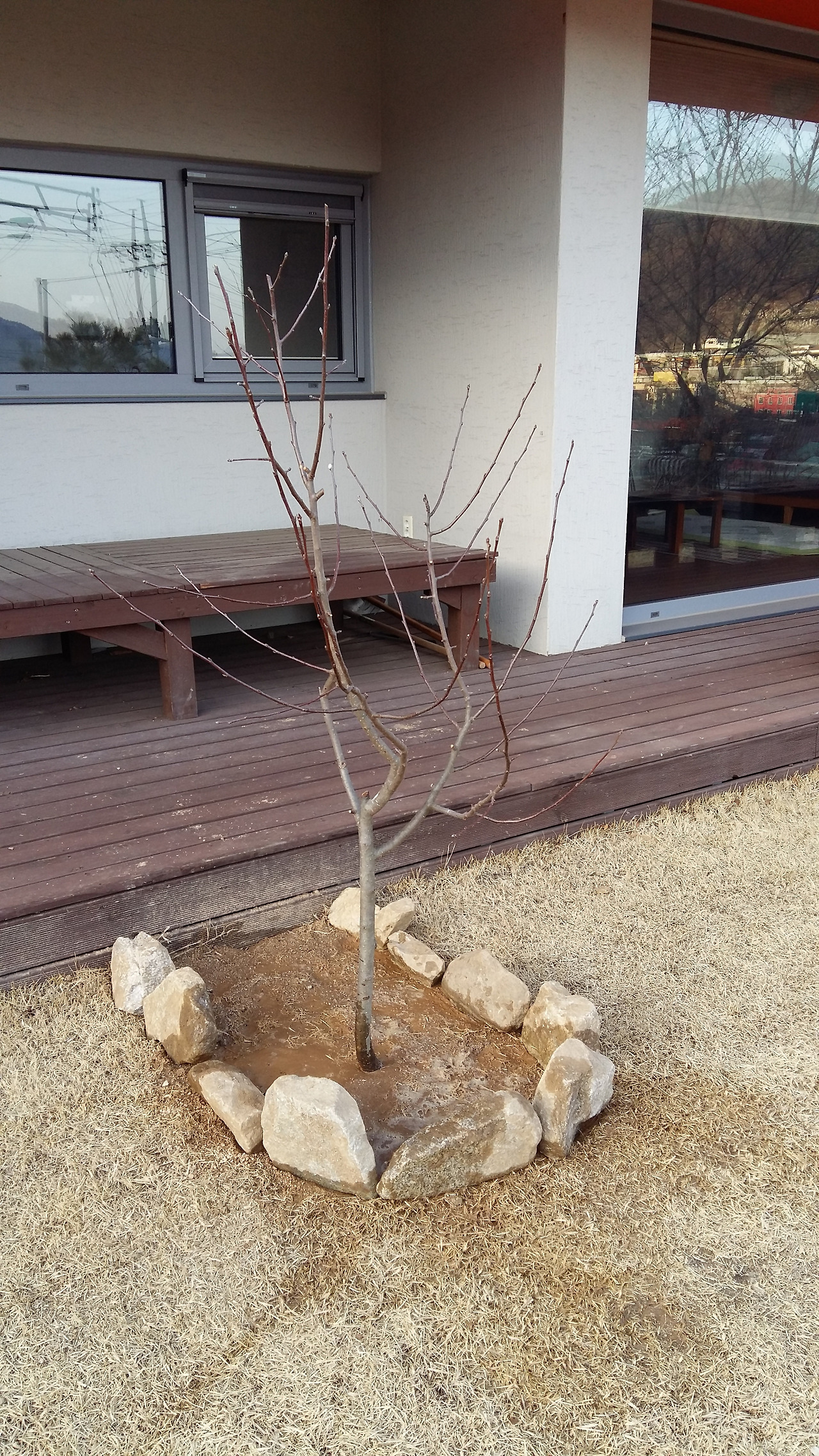 올해는 집 옆의 땅을 빌려서 농사도 크게 지을 거고 마당의 나무들도 재정비하려니 마음은 진작부터 바빴다. 우리 집에는 소나무가 한 그루뿐이어서 마당이 휑하게 보인다고 겨울 내내 불평하던 남편 때문에 지난 주말에 이웃으로부터 소나무 한 그루를 분양받아 심었다.