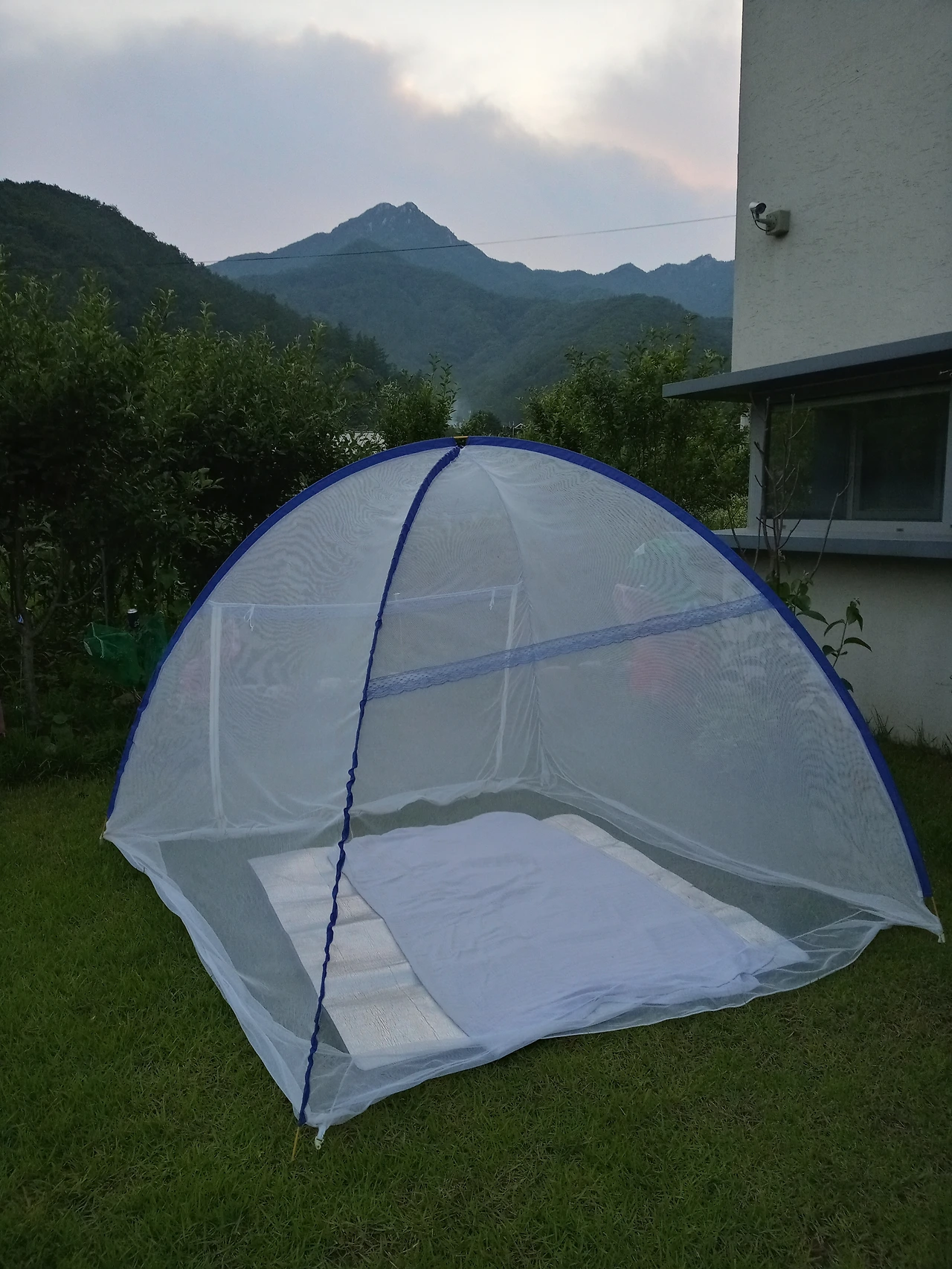 시골 생활하면서 내가 좋아하는 시간은 아침과 저녁인데 모기가 없는 오전에는 데크에 무중력 의자를 펴놓고 책을 읽곤 한다. 저녁에는 잔디밭에 모기장을 펼치고 누워서 어두워가는 하늘을 보고 개구리 소리를 듣는다. 시원한 밤공기가 얼마나 선선하고 상쾌한지 모른다.