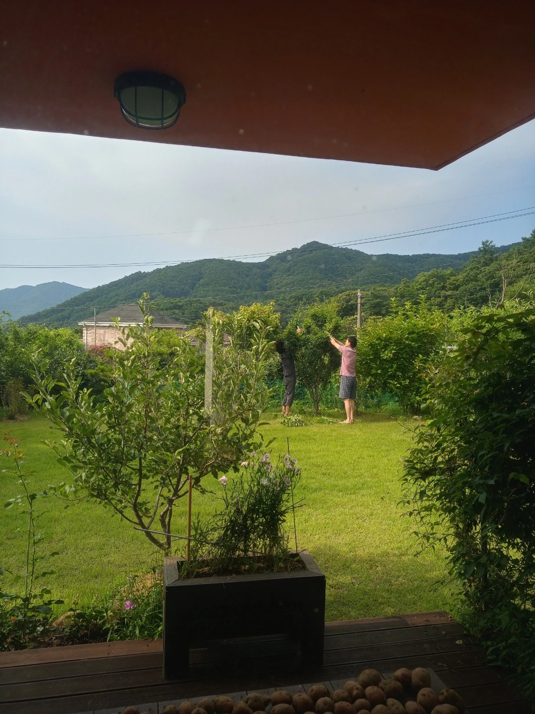 이제 곧 농작물이 본격적으로 열리면 그것으로 충분히 밥상을 차릴 수 있다. 장마가 지나고 나면 감자 캔 자리에 알타리를 심어 김치를 담으면 된다. 농사 밑이 걸다고 사 먹는 것에 비해 맛도 좋고 양이 많아 나눠서 먹어야 할 정도로 푸짐하다. 남편은 나무에 전지 작업할 때가 가장 즐겁다고 했다.