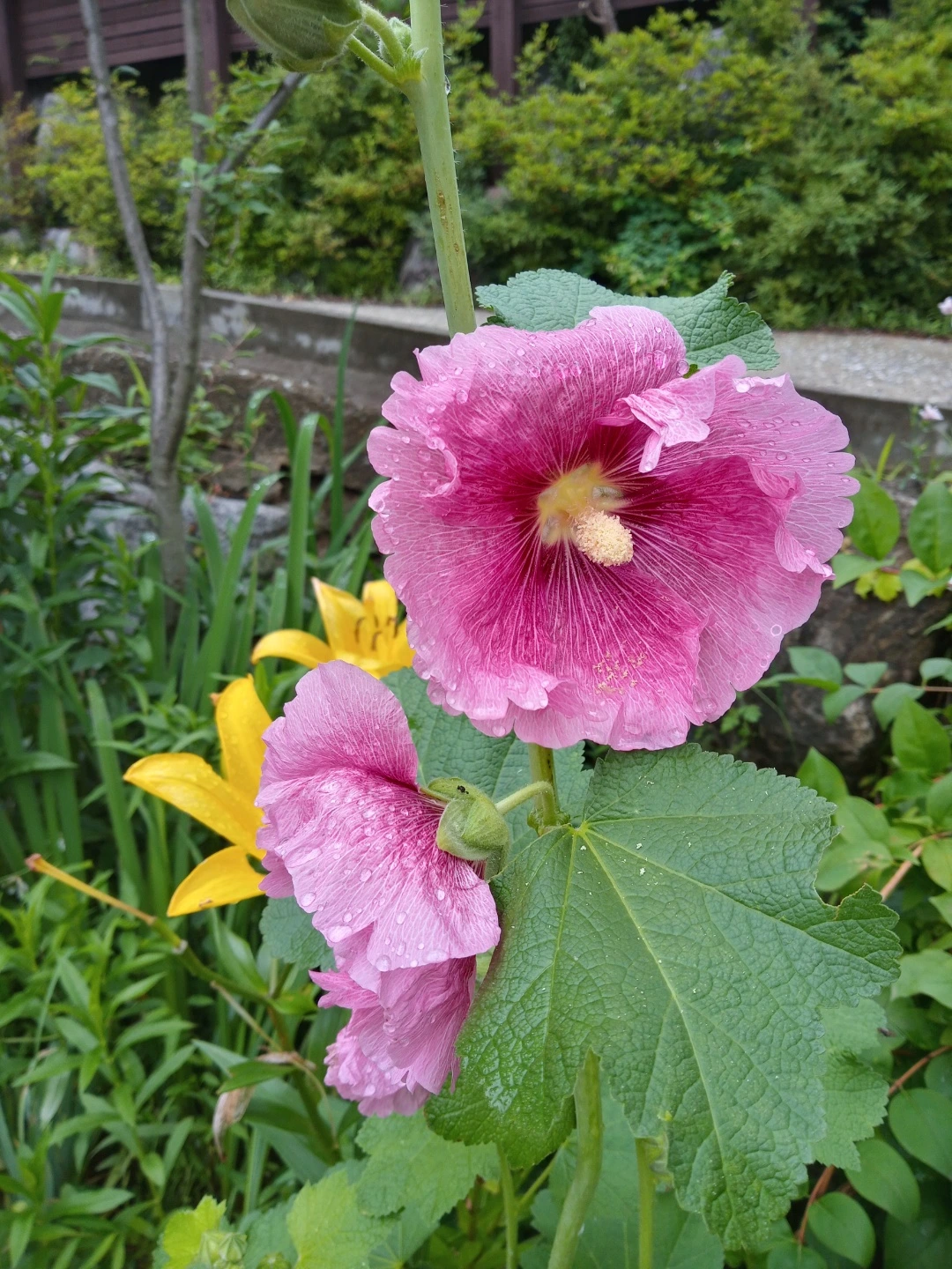 호박잎으로 먹는 시골 밥상도 맛있고 올 때마다 쑥쑥 자라 있는 옥수수와 토마토 오이 가지 고추 등이 반갑고 예쁘다. 그뿐인가. 뒤꼍의 화단에는 봉오리였던 꽃이 방긋 피어 있다.