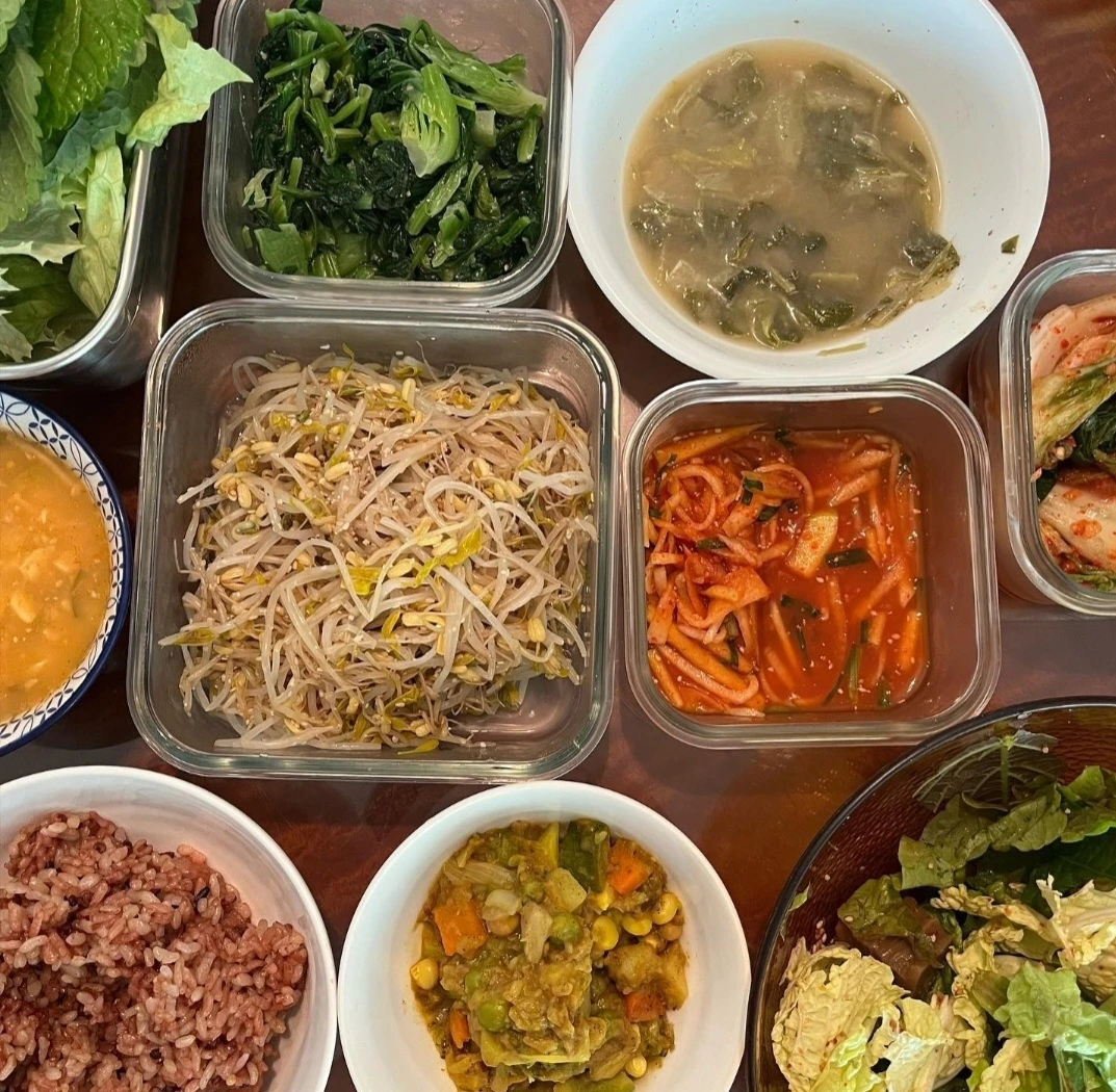 냉장고에는 하루 걸러 사다 나르는 푸성귀로 가득하다. 섬초, 콩나물, 무, 연근, 상추, 알배추, 로메인, 숙주나물, 파프리카, 방울토마토, 버섯류, 두부, 묵(도토리, 메밀, 청포)이 차례대로 요리되어 밥상에 오른다. 딸이 직접 요리를 할 때도 있고 시간이 많은 내가 후딱 만드는 게 빠르다. 딸은 여름에는 쌈채소를 많이 먹더니 추워지니까 양배추를 삶아서 먹고 곱창김을 즐겨 먹어서 가스불을 무서워하는 딸을 위해 대신 김을 굽는다. 주부의 마음에는 육식을 안 하는 딸이 어쩐지 안쓰러워서 채소 요리를 더 신경 써서 하게 된다.