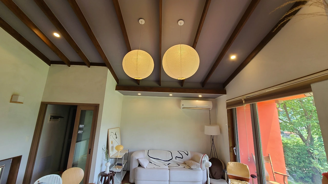 문제는 천창의 실리콘 테두리가 세월이 흐르면 굳어져서 틈이 벌어지고 비가 많이 오는 장마철엔 그 사이로 빗물이 샌다. 새는 빗물은 집안으로 똑똑 떨어져서 빗물 받는 통을 네 개나 받쳐 두어야 했다. 천창에서 새는 비는 서까래를 타고 점점 아래로 내려와서 처음엔 다락과 계단에 물받이를 두었다가 거실까지 물통을 늘어놓게 되었다.