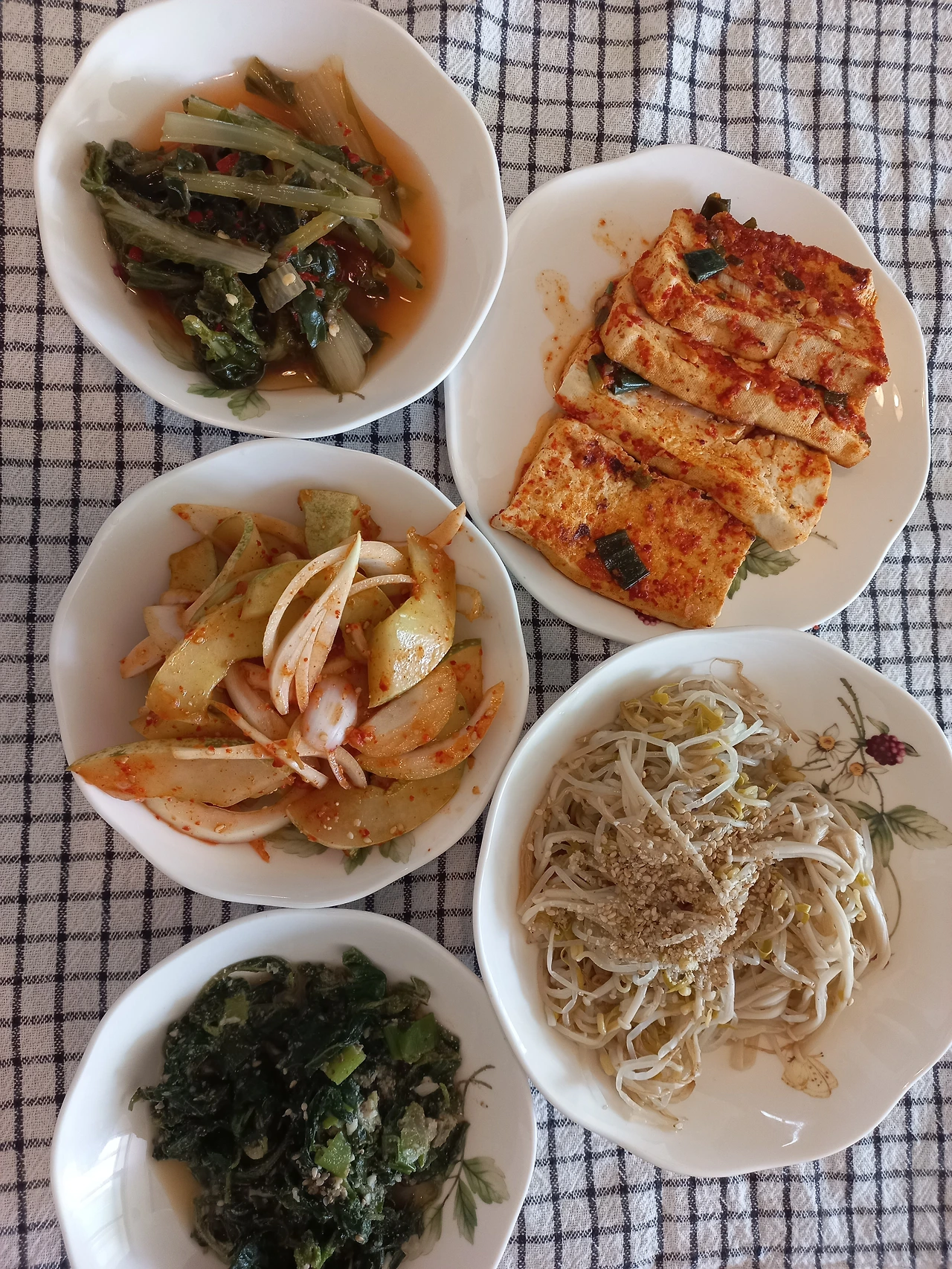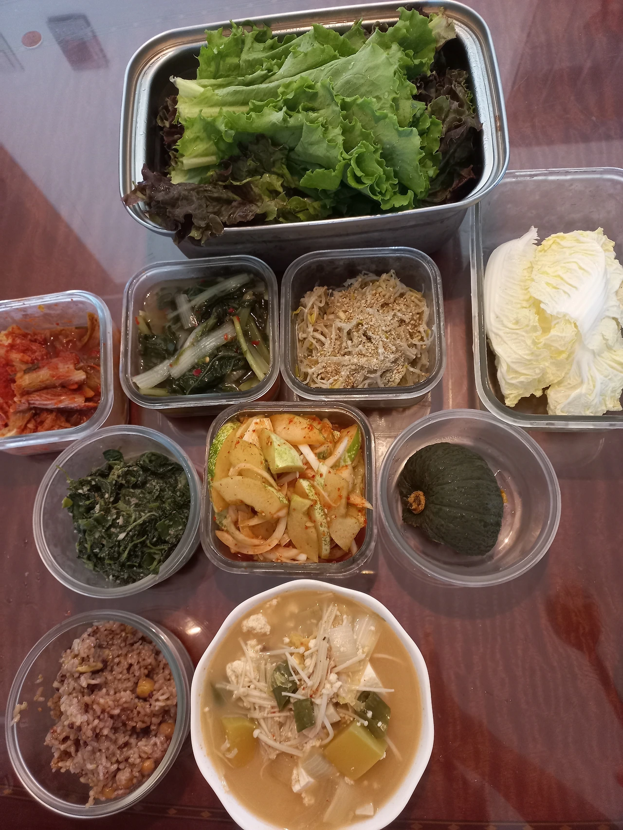 나물 반찬은 같은 걸로 자주 해 먹지만 새로 무치기만 해도 새롭게 맛있으니 오늘은 뭘 해 먹나 고민할 필요 없이 냉장고에 항상 채워져 있는 호박, 오이, 가지, 버섯, 콩나물, 숙주나물. 두부 이런 걸 데치거나 볶거나 끓이면 된다. 여러 가지의 채소를 아낌없이 듬뿍 넣으면 카레나 된장찌개도 훌륭한 맛을 내기 때문에 한 끼 요리로 손색이 없다.
