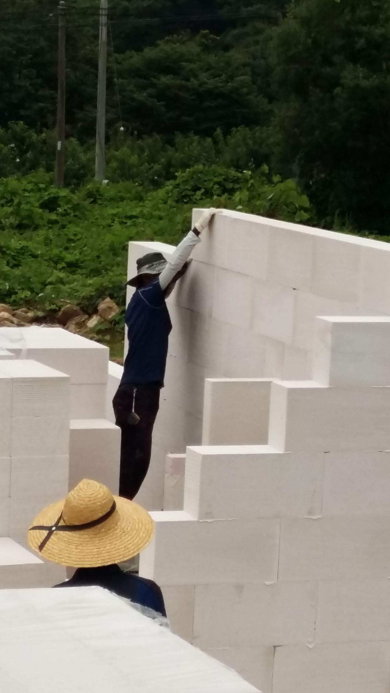 가볍고 커다란 폼 블록이다 보니 하루 사이에 벽은 거의 올라가서 그걸 구경하는 재미가 쏠쏠하였다.