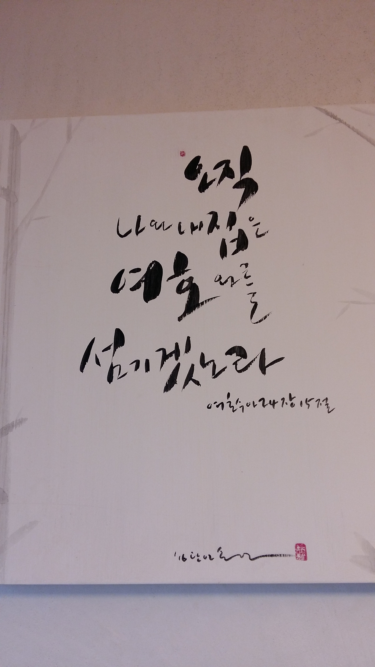 그리고 캘리그라피 1세대인 손샘이 우리 집에 써주신 손글씨이다. 힘과 서정이 느껴지는 멋진 필체를 이젠 늘 가까이에서 볼 수 있게 되었다.