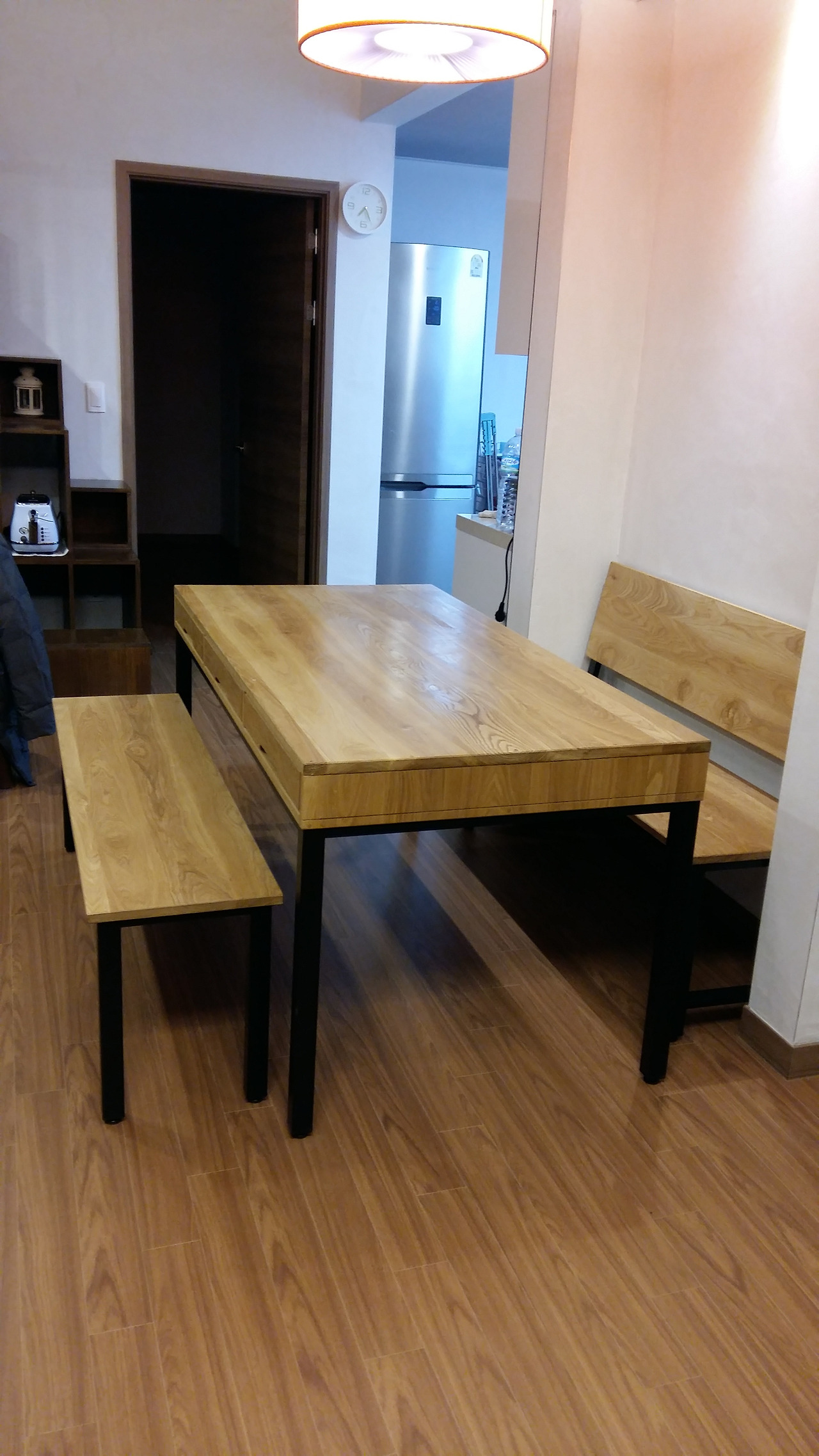 철제로 만든 식탁 다리가 도색이 늦어지는 바람에 한 달 정도 기다렸다가 식탁을 놓을 수 있었다.