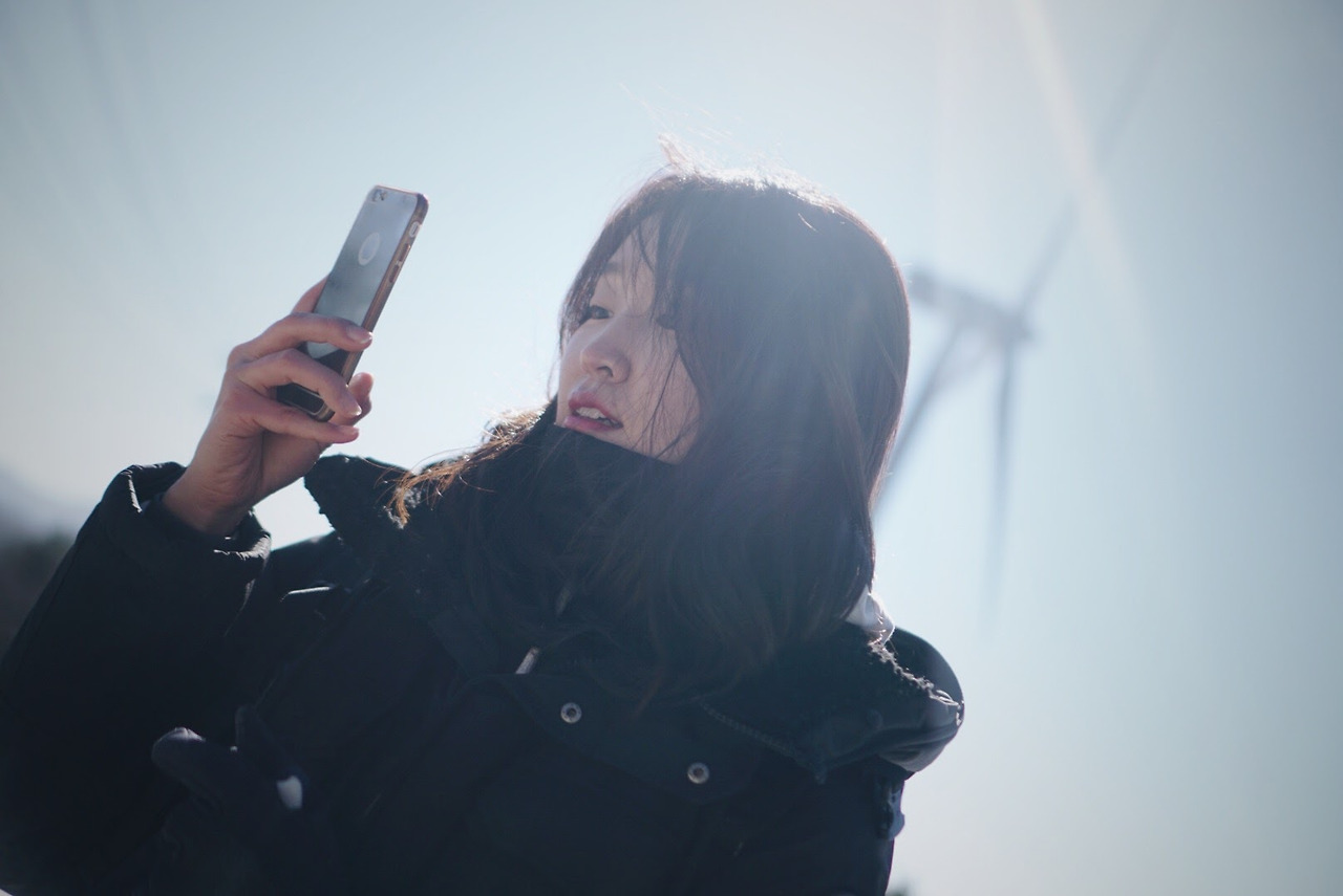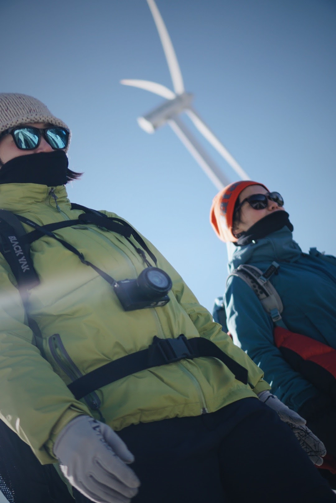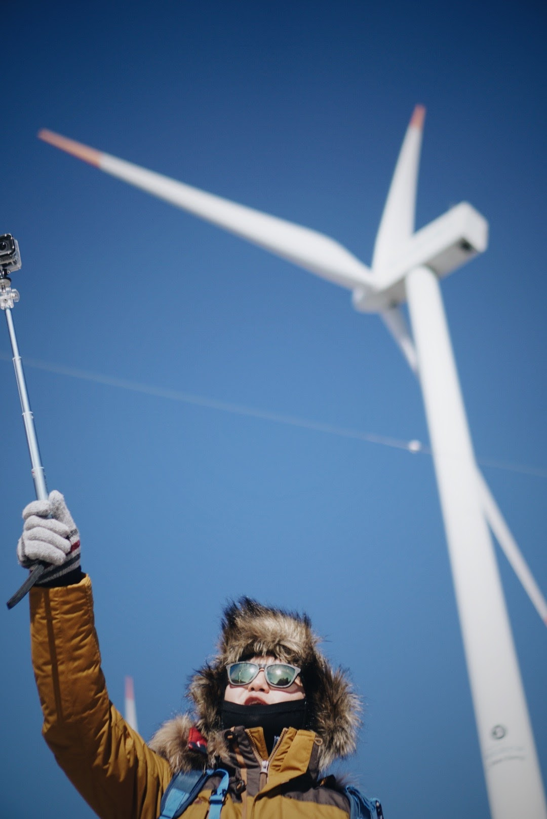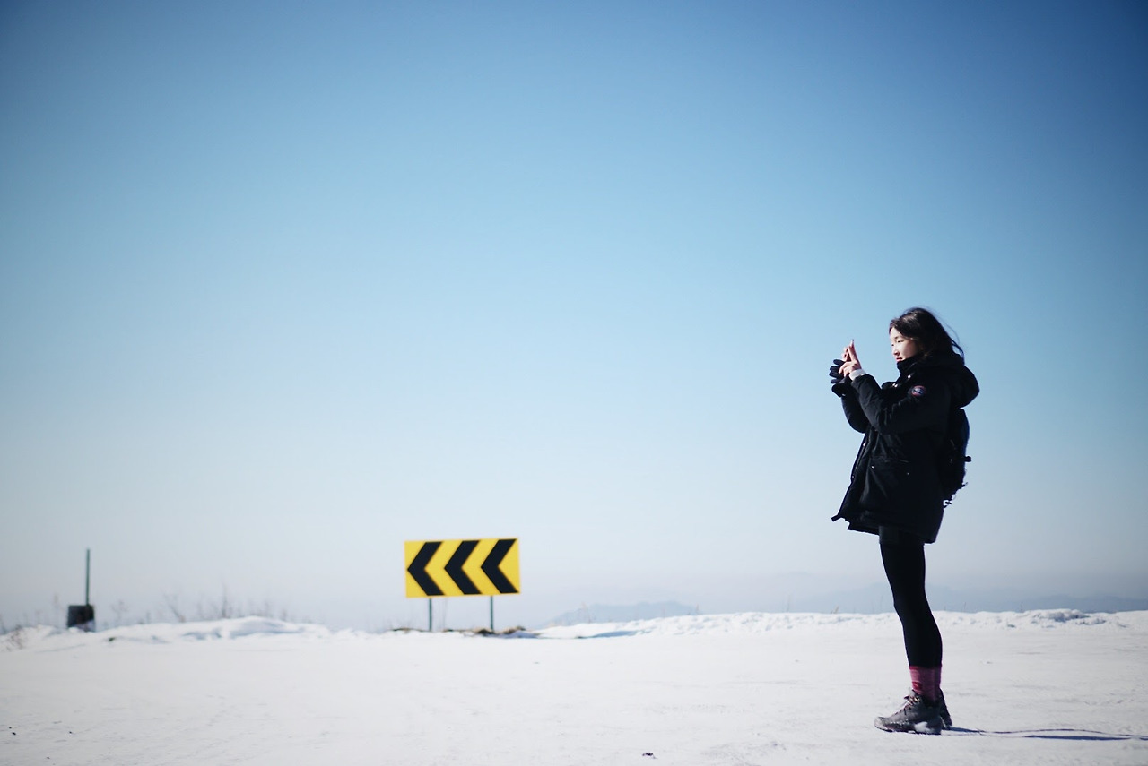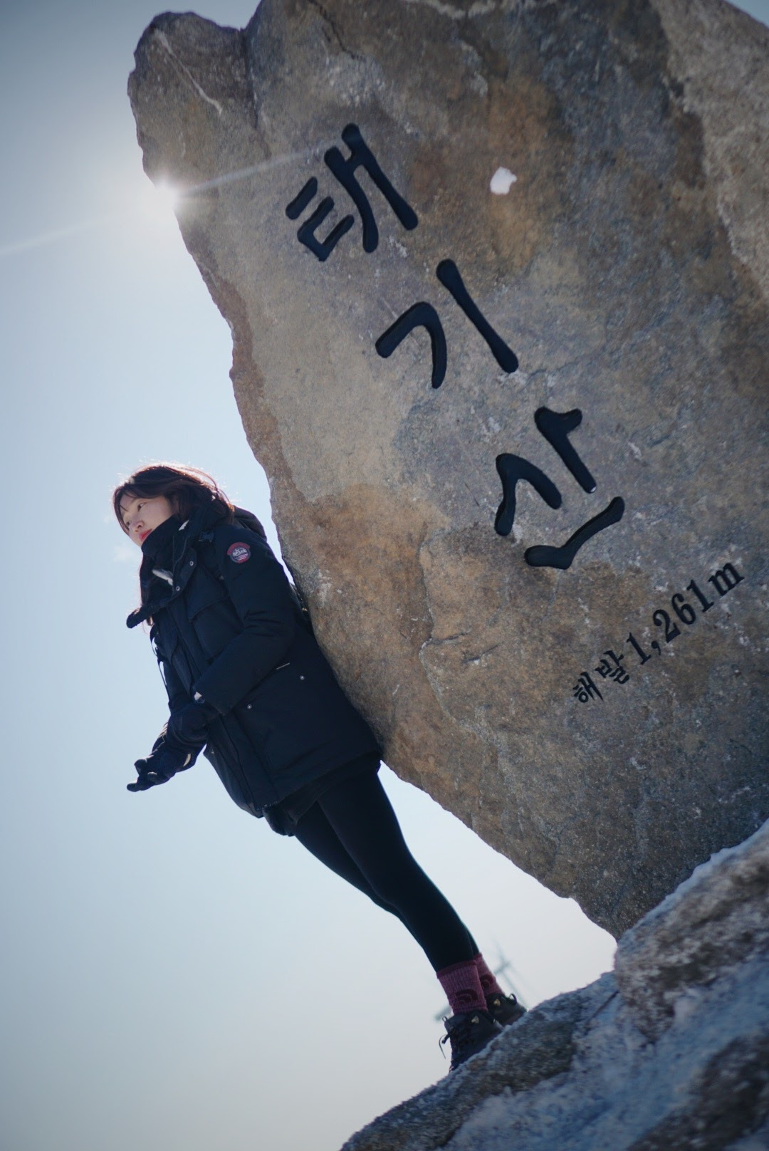 오늘 등산 아니 트래킹 코스를 따라가면 이렇게 풍력발전기를 옆에 두고 이동하게 된다. 발전기에 붙어있던 고드름이 떨어질 수 있으니 조심해야 한다.