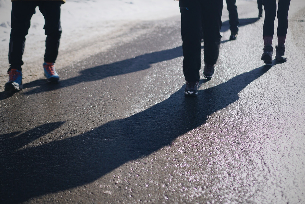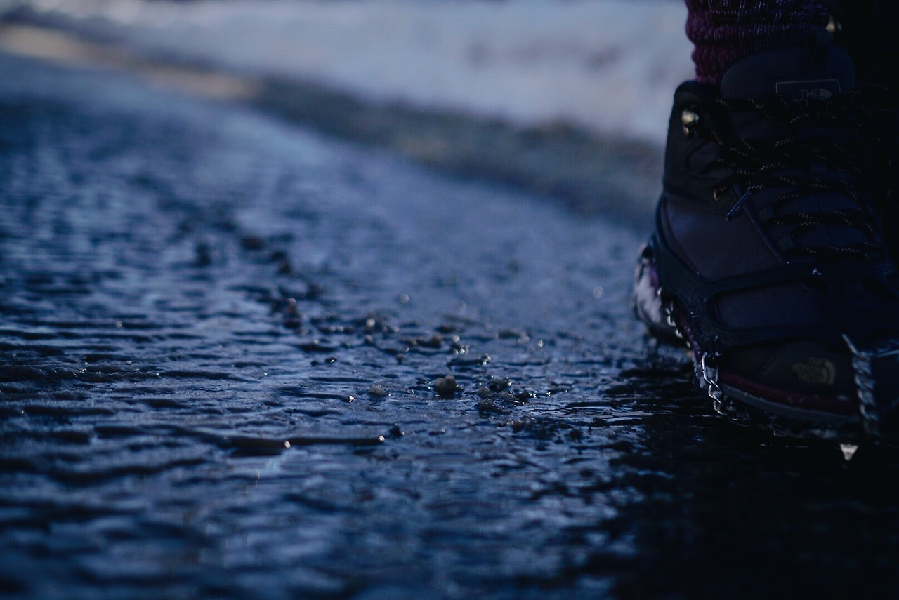 해가 있는 곳에서 녹은 눈이 흘러내려와 그늘 진 곳에서 얼었다.