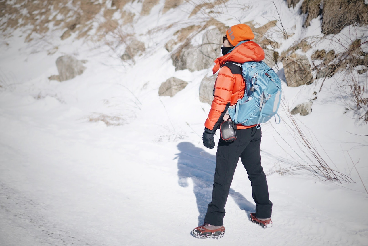 등산 장비를 제대로 갖추고 있었음.