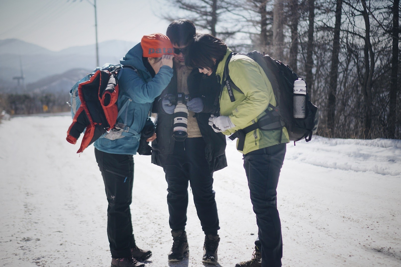 카메라를 보물처럼 꽉 쥔 자와 콧구멍 후비는 자와 귀찮아하는 자.