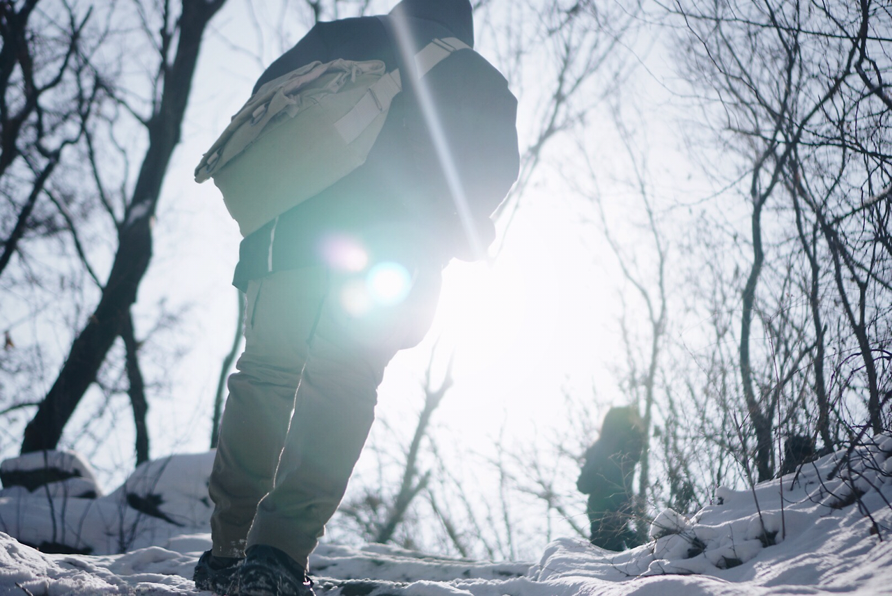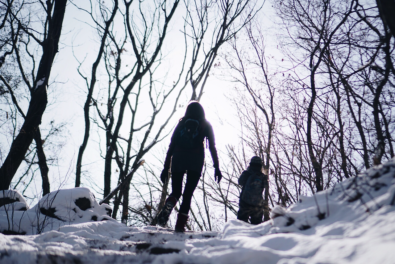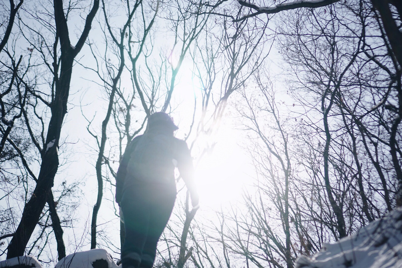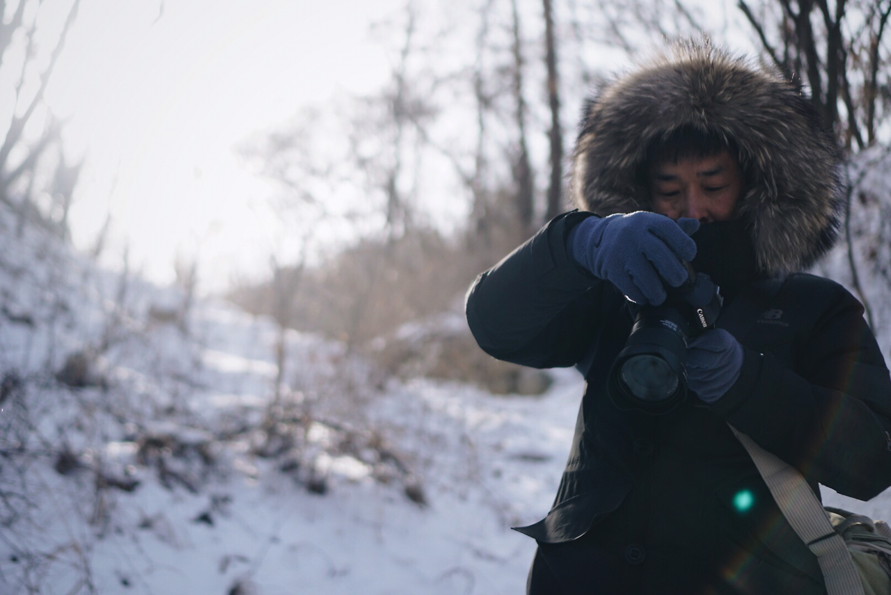 나무 뒤에 숨어봐도 춥긴 마찬가지다.