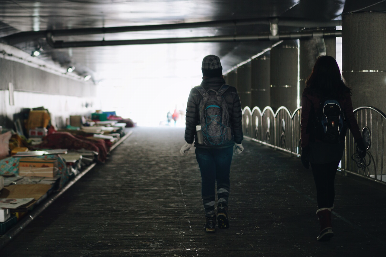 지하도로를 지나 밥을 먹으러 갔다.