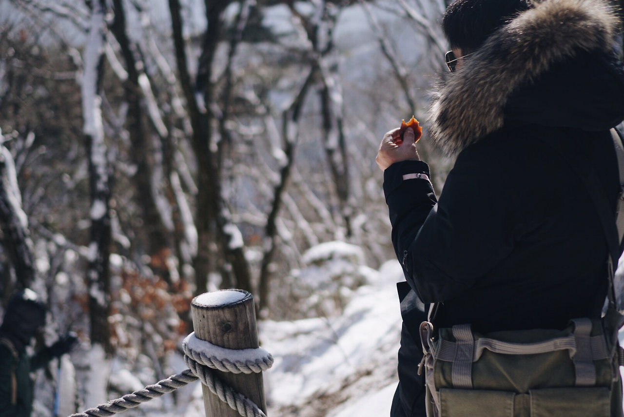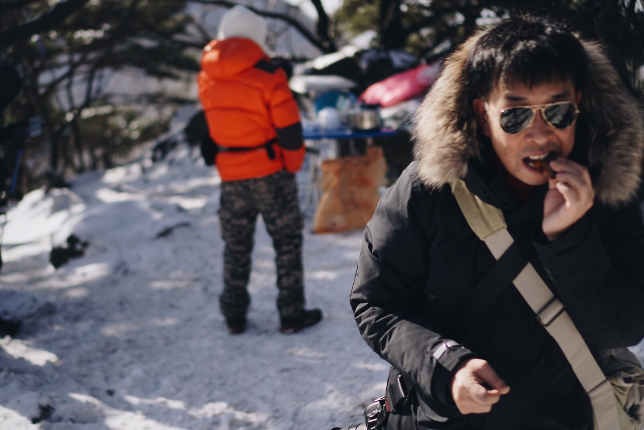 이제 입김을 휘날리며 하산.