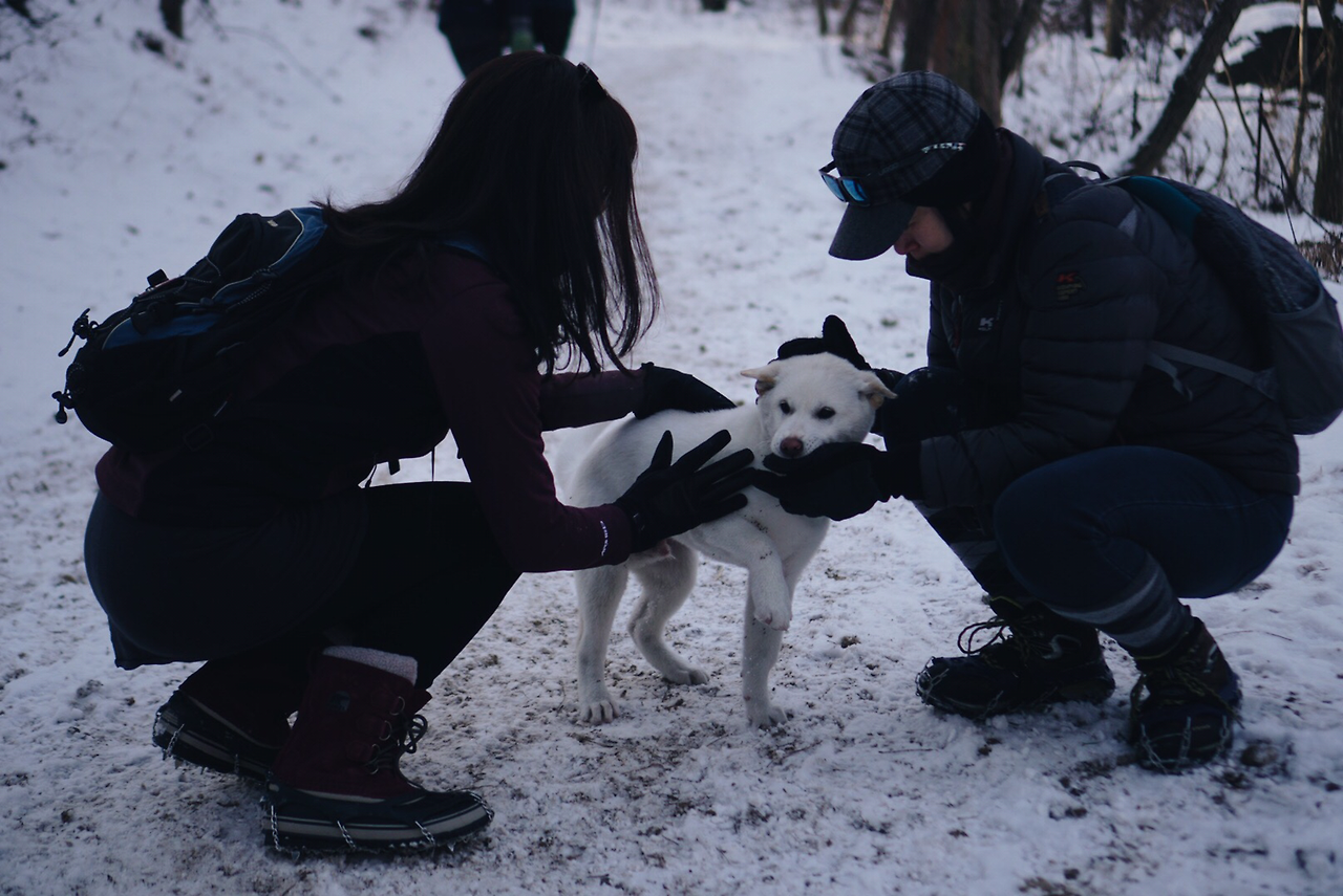 과하게 사람을 좋아하는 강아지를 만났다.