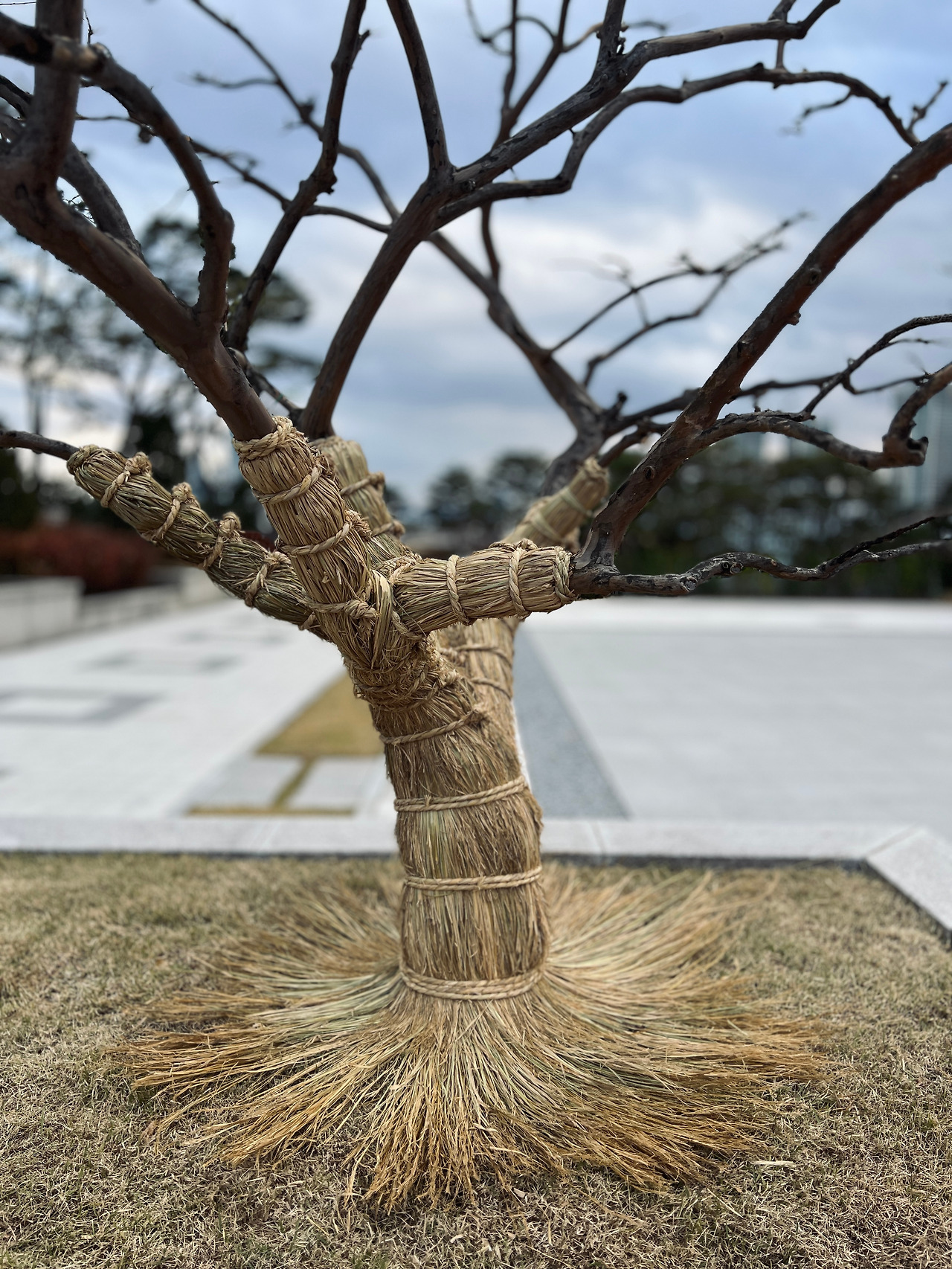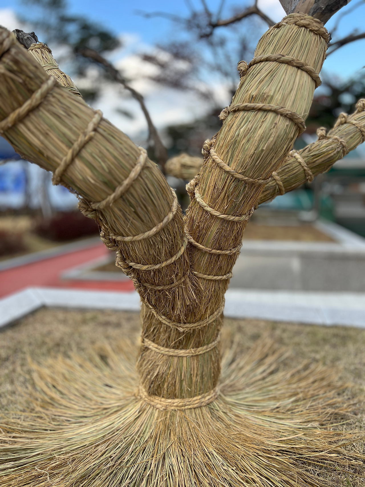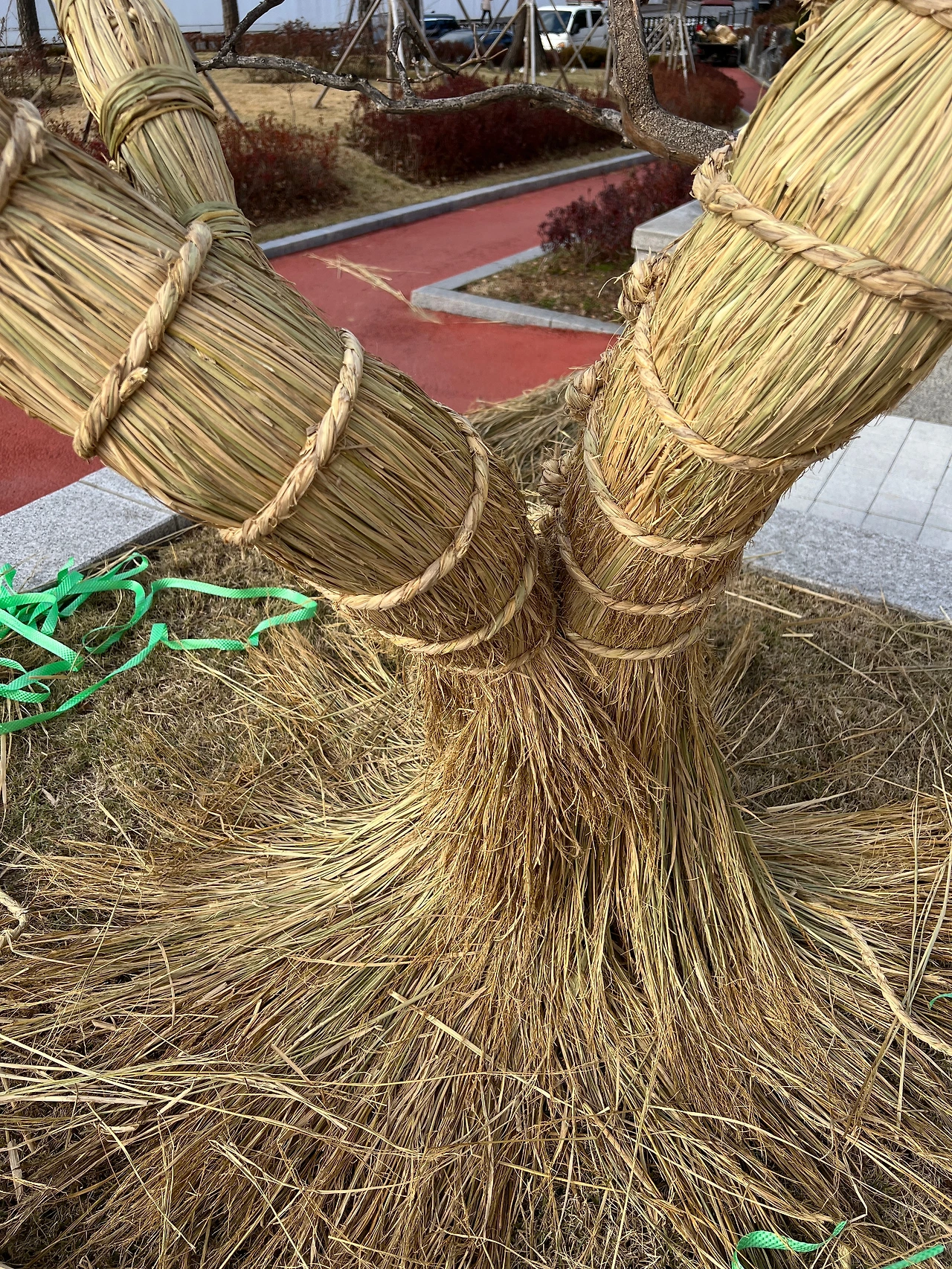 조경자재 판매점에서 볏짚, 이엉 그리고 새끼줄 모두 구할 수 있다. 이제 이 재료들을 활용해 나무에게 겨울옷을 입혀줄 수 있다.