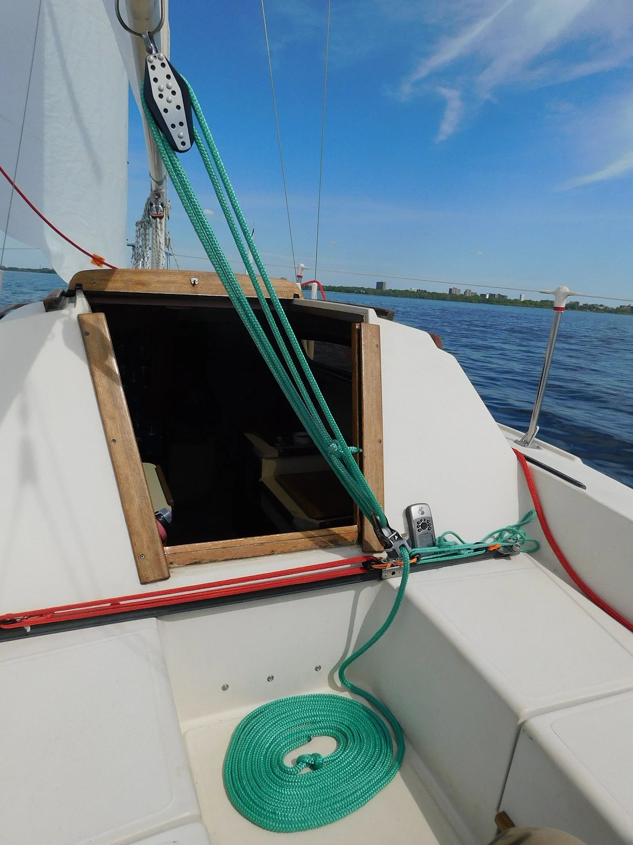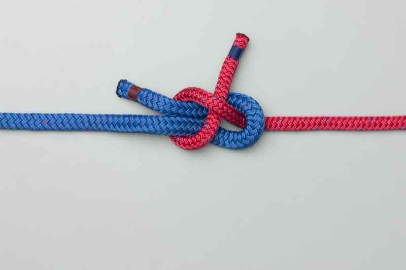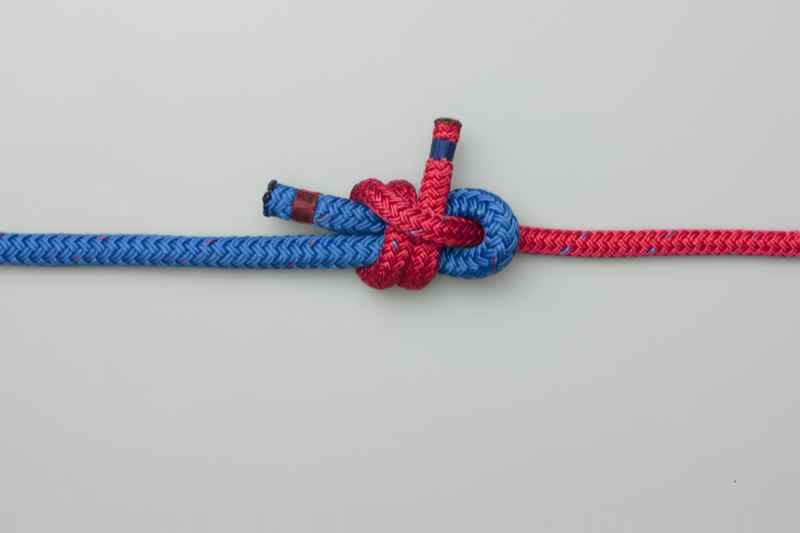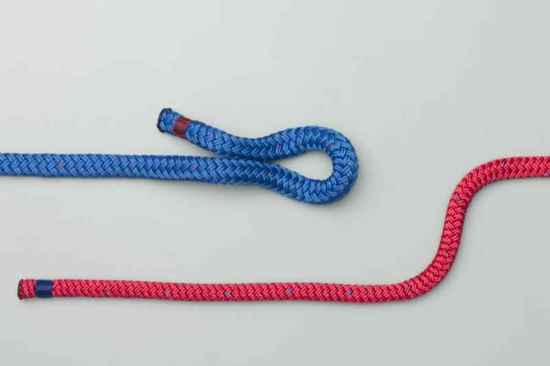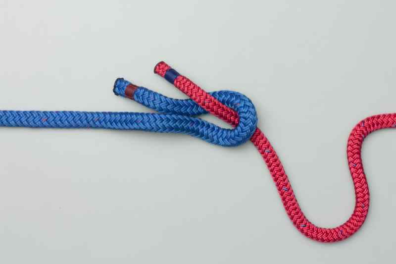 (2) 상대적으로 얇은 로프(빨간색)가 파란색 로프의 바이트(A bight)를 통과하여 파란색 로프 뒤로 돌아간다.