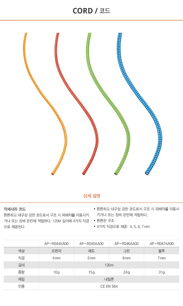 * 이곳에서 말하는 코드나 슬링은 5mm ~ 6mm가량되는 얇은 줄을 의미한다. 코드 양끝을 피셔맨즈 밴드로 묶으면 슬링으로 사용할 수 있다.
