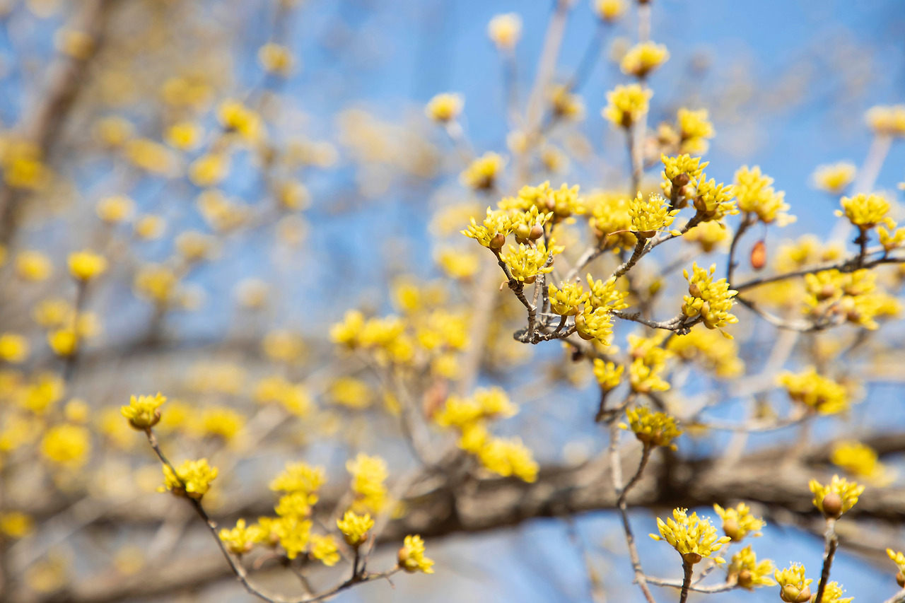 소한(小寒), 대한(大寒)이 지나고 혹독한 겨울 추위도 한 걸음 물러나는 입춘(立春)이 다가올 즈음 정원에 식재된 나무의 꽃봉오리가 터질 듯 말 듯 바라보고 있으면 괜스레 마음이 설렌다. 소복이 쌓인 흰 눈 사이로 노란 꽃망울이 올라오는 '크로커스', 봄의 전령이라 불리는 '복수초' 등이 봄의 시작을 본격적으로 알린다. 비슷한 시기 따뜻한 남부지방에서는 벌써 매화꽃이 피었다는 소식이 들린다. 봄을 알리는 수많은 꽃과 나무 중 노란색 꽃이 먼저 피고 붉게 익는 열매가 있는 '산수유'가 유독 눈에 들어온다. 조경수로도 많이 식재되어 있어 우리 주변에서도 흔하게 볼 수 있다.
