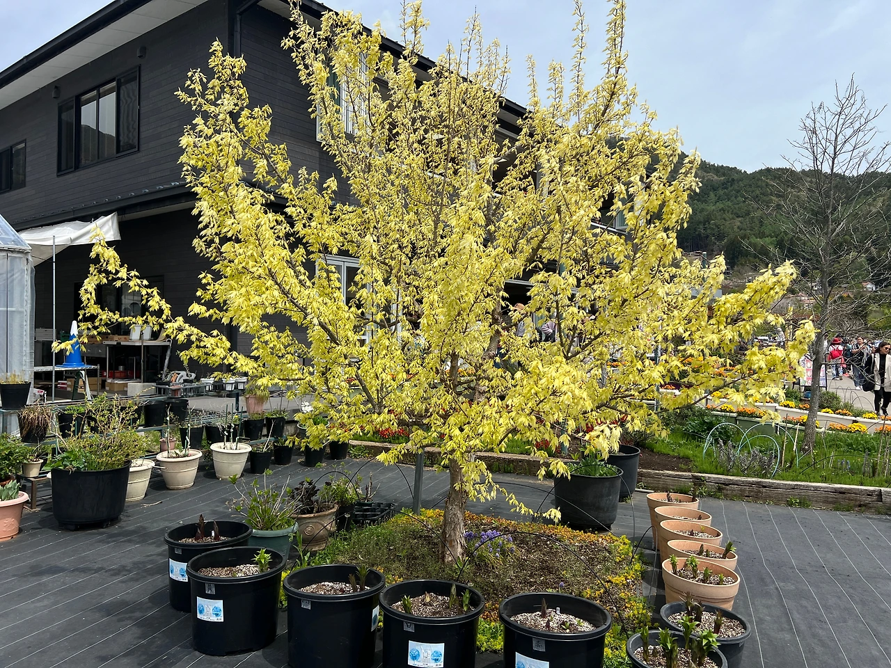 노란색 종 모양을 한 꽃이 활짝 핀 나무가 있었는데 수종을 모르겠다.