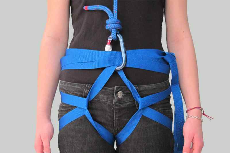 대략 6M 길이를 가진 웨빙(Webbing)이나 로프(Rope)를 활용해 임시 하네스를 만들 수 있는 매듭법이다. 웨빙이나 로프의 중앙을 기준으로 15cm 길이의 루프(Loop)를 만들고 루프를 바지의 허리 부근에 밀어 넣는다. 이는 매듭이 완성되면서 하네스의 시트 역할을 한다.
