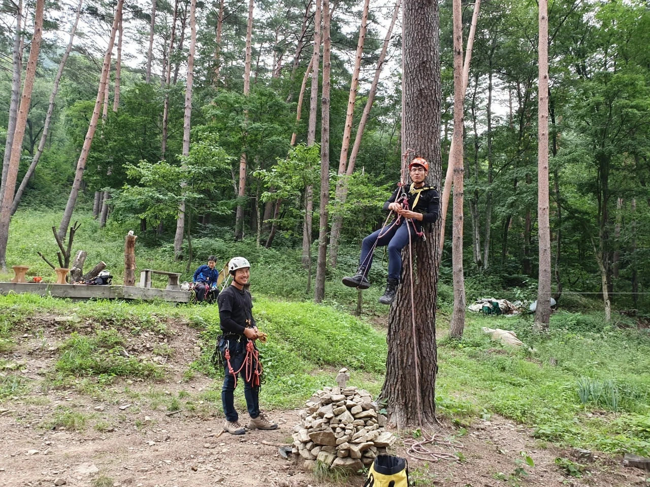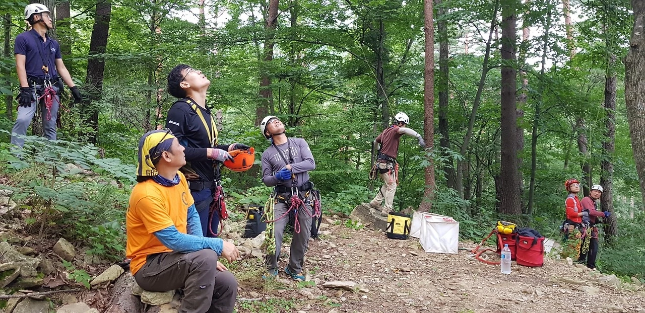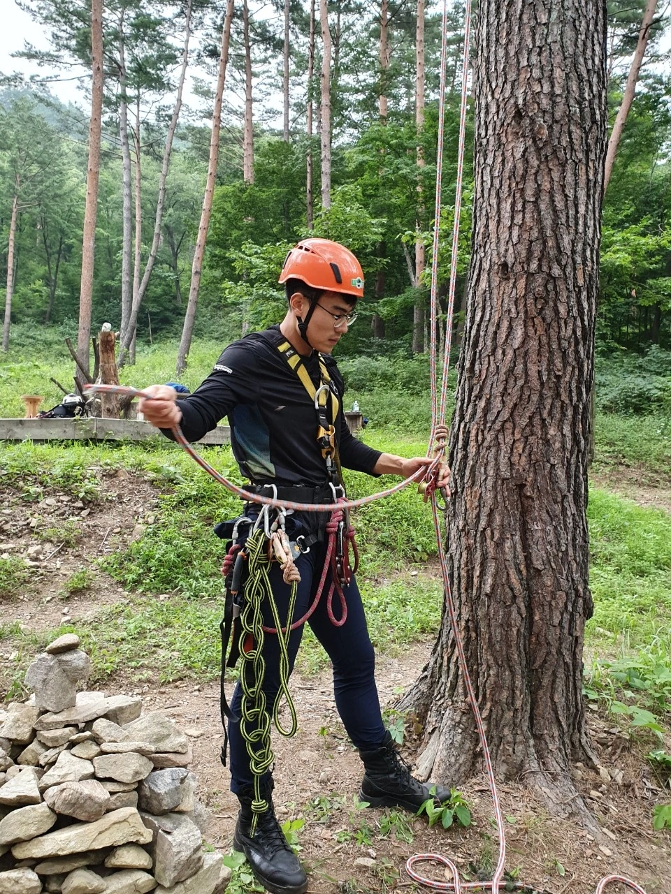 간단히 휴식을 마친 나는 교육생분들 옆에서 매듭을 연습했다. 그러다 보면 다른 선생님들께서 찾아와 내게 트리클라이밍 매듭 확인을 부탁했다.