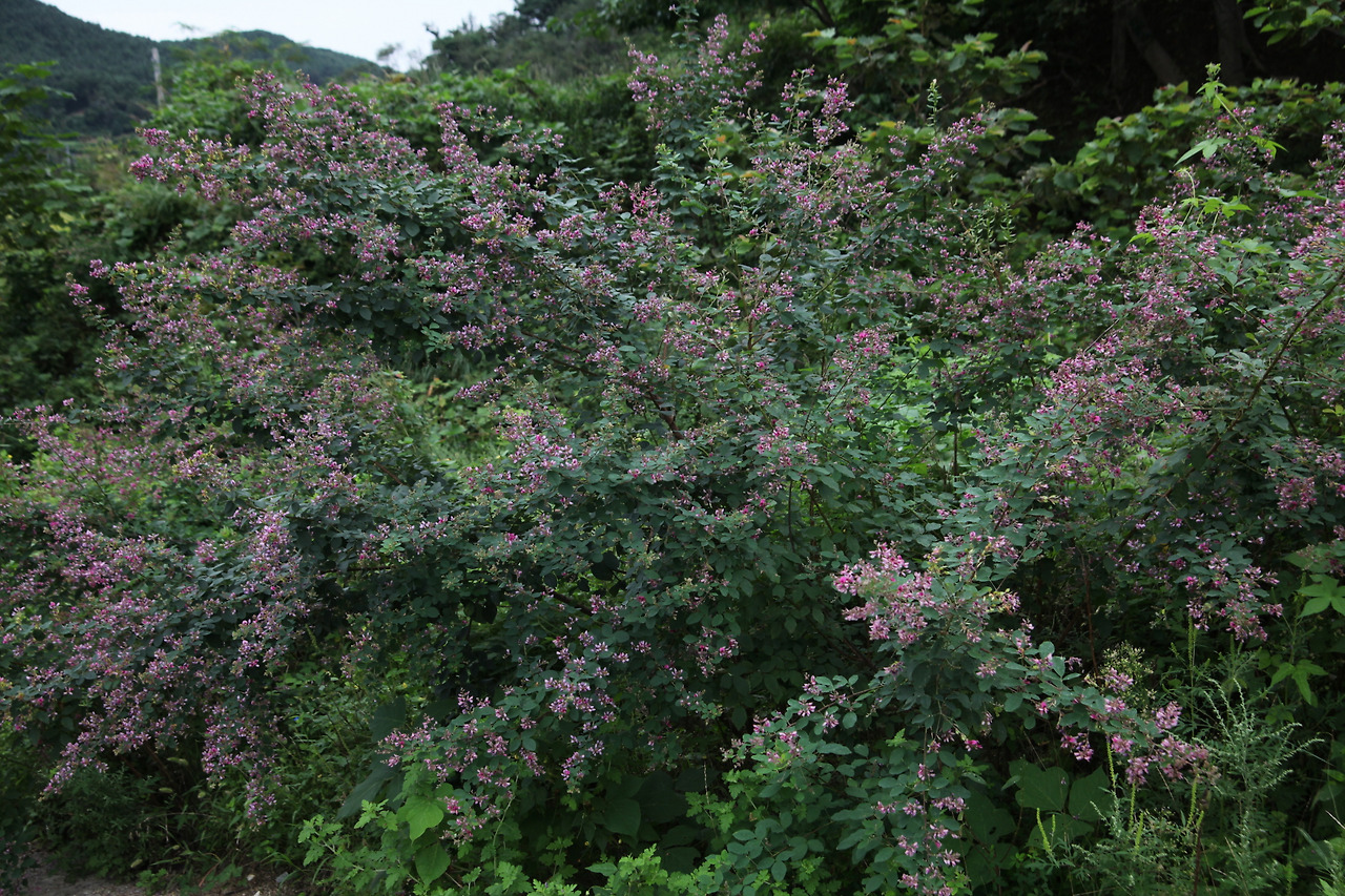 독한 마음도 잠시 활짝 핀 싸리꽃에 벌이 앉았다.