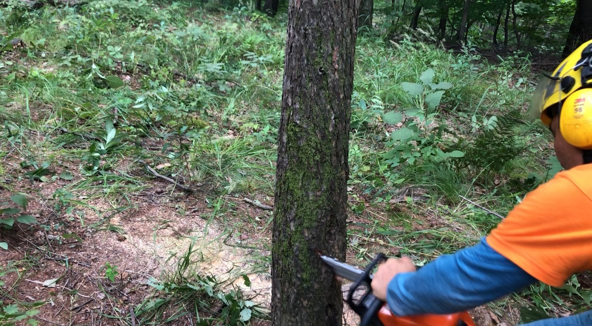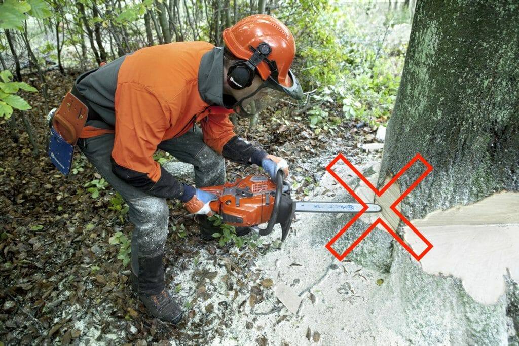 나무를 베기 전 대피로 확보를 위한 주변 정리를 한다. 관목이나 소교목을 제거하는 동안에도 킥백이 발생할 수 있으므로 당겨지는 힘(Pulling)을 사용하는 가이드바 아랫부분을 이용한다. 또한, 절대 엔진톱을 어깨 위로 사용하지 않는다.