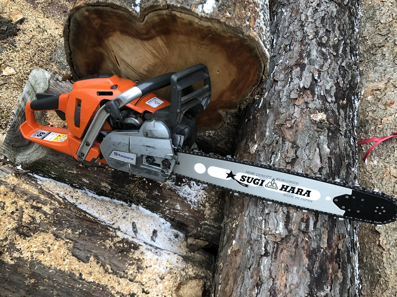 2. 찔러 베기와 같은 기술을 사용하여 엔진톱이 목재 안에 갇혔을 때.
