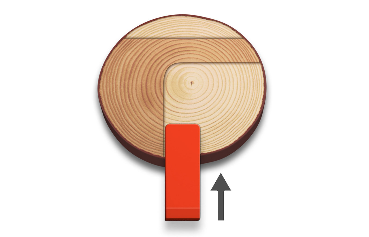 나무 뒤에서 자르며 반대편 가장자리 목재를 남겨둔다.