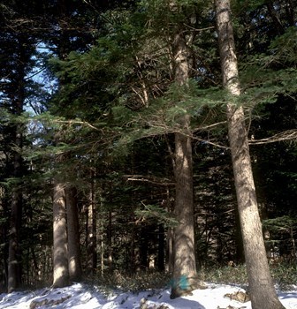 오른 다리를 벌채목에 기대 균형감을 더한다.