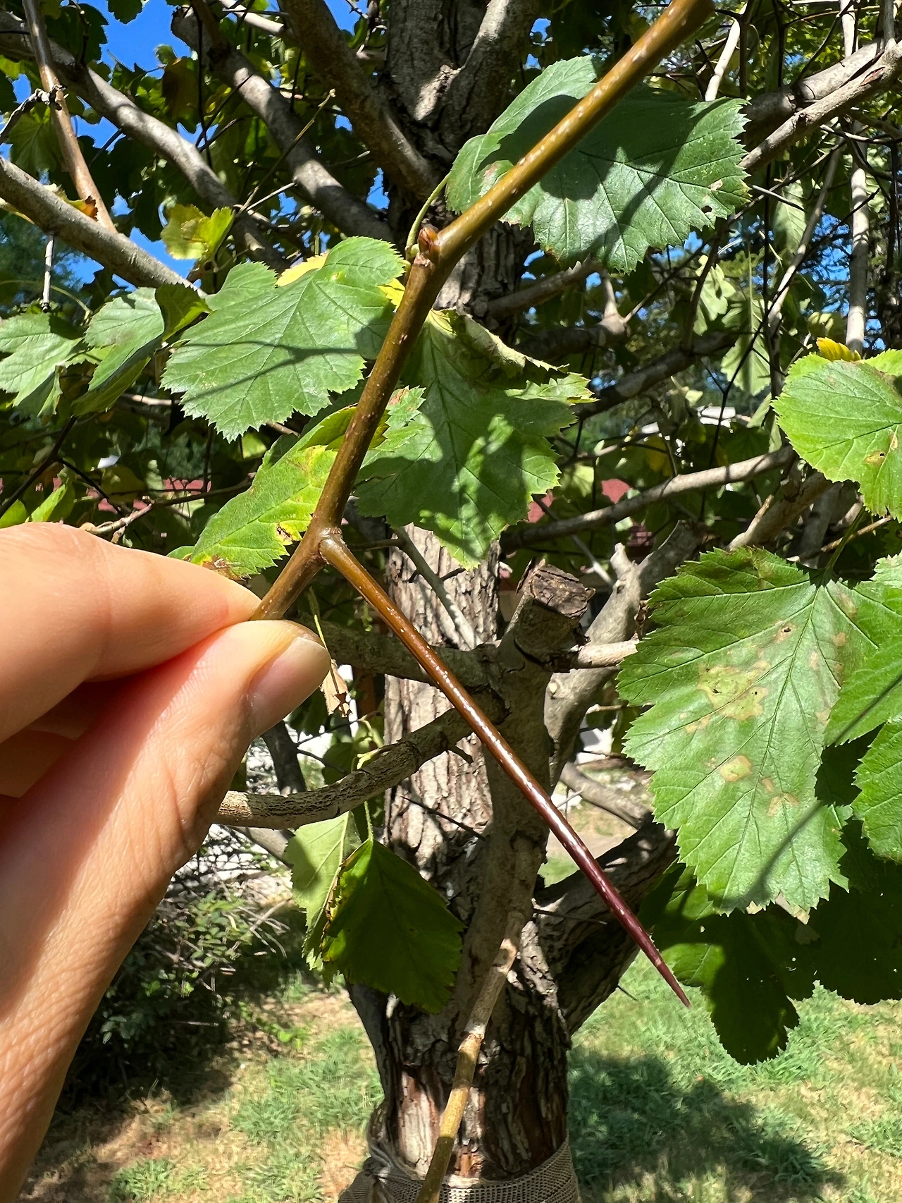 붉게 익은 산사나무 열매는 달콤 쌉쌀한 맛이 나 얼핏 사과를 먹는 듯한 느낌이 난다고 한다. (나는 아무 맛도 느껴지지 않던데..?) 그래서 새와 벌레가 꼬인다. 하지만, 산사나무도 호락호락하게 그들에게 쉽게 열매를 놓아주지 않는다. 아래 사진에서 보다시피 꽤나 큰 가시가 달려있어 나무에 접근하기 까다롭다. 그럼에도 불구하고 벌레는 열매뿐만 아니라 잎도 갉아먹어 적절한 방제가 이뤄져야 한다.