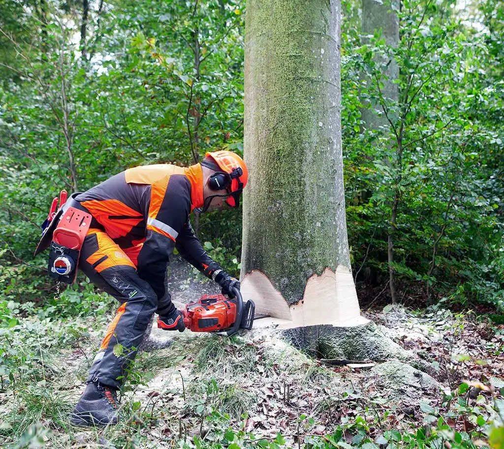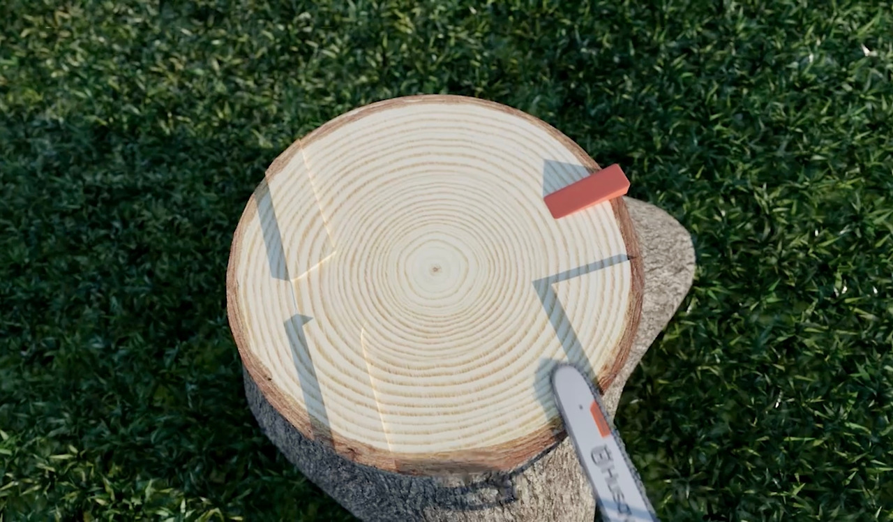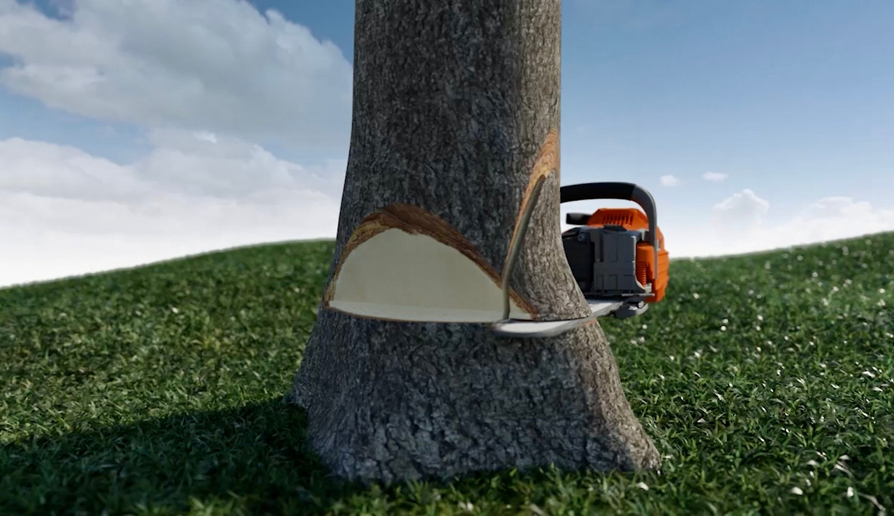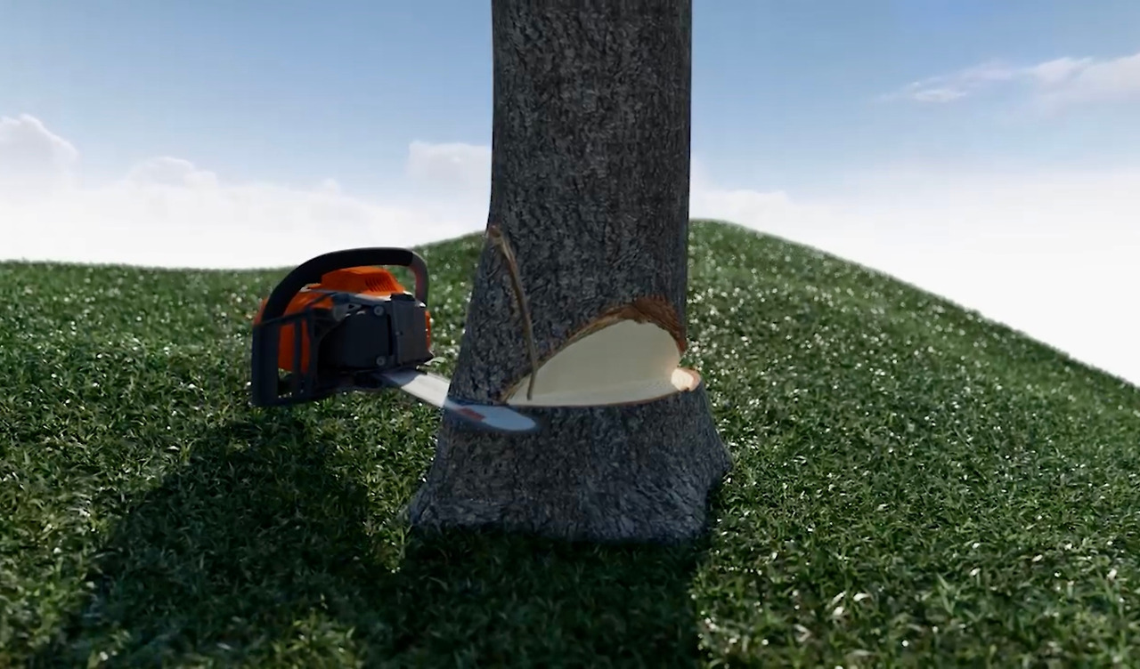 이 방법은 휴대한 기계톱 크기보다 벌채 대상이 두 배 이상의 크기를 가진 매우 두꺼운 나무를 제거할 때 사용된다.