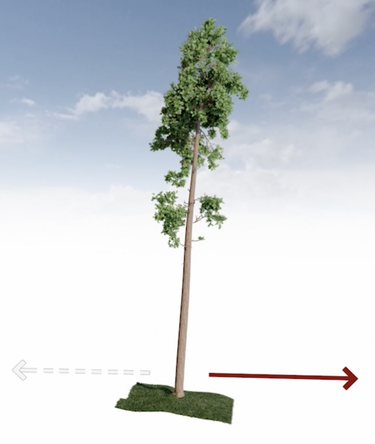 이 방법은 약간 기울어져있으며 중간 사이즈의 굵기를 가진 나무에 적용할 수 있다.