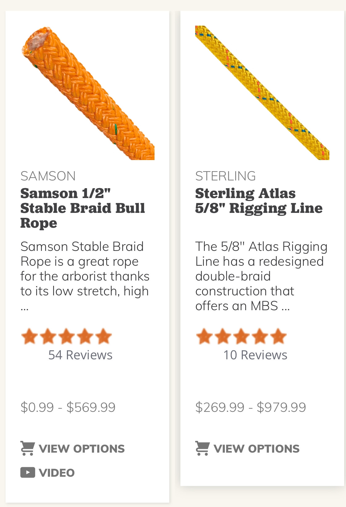 수목용 리깅 로프, 길이에 따라 가격이 상당히 비싸진다.