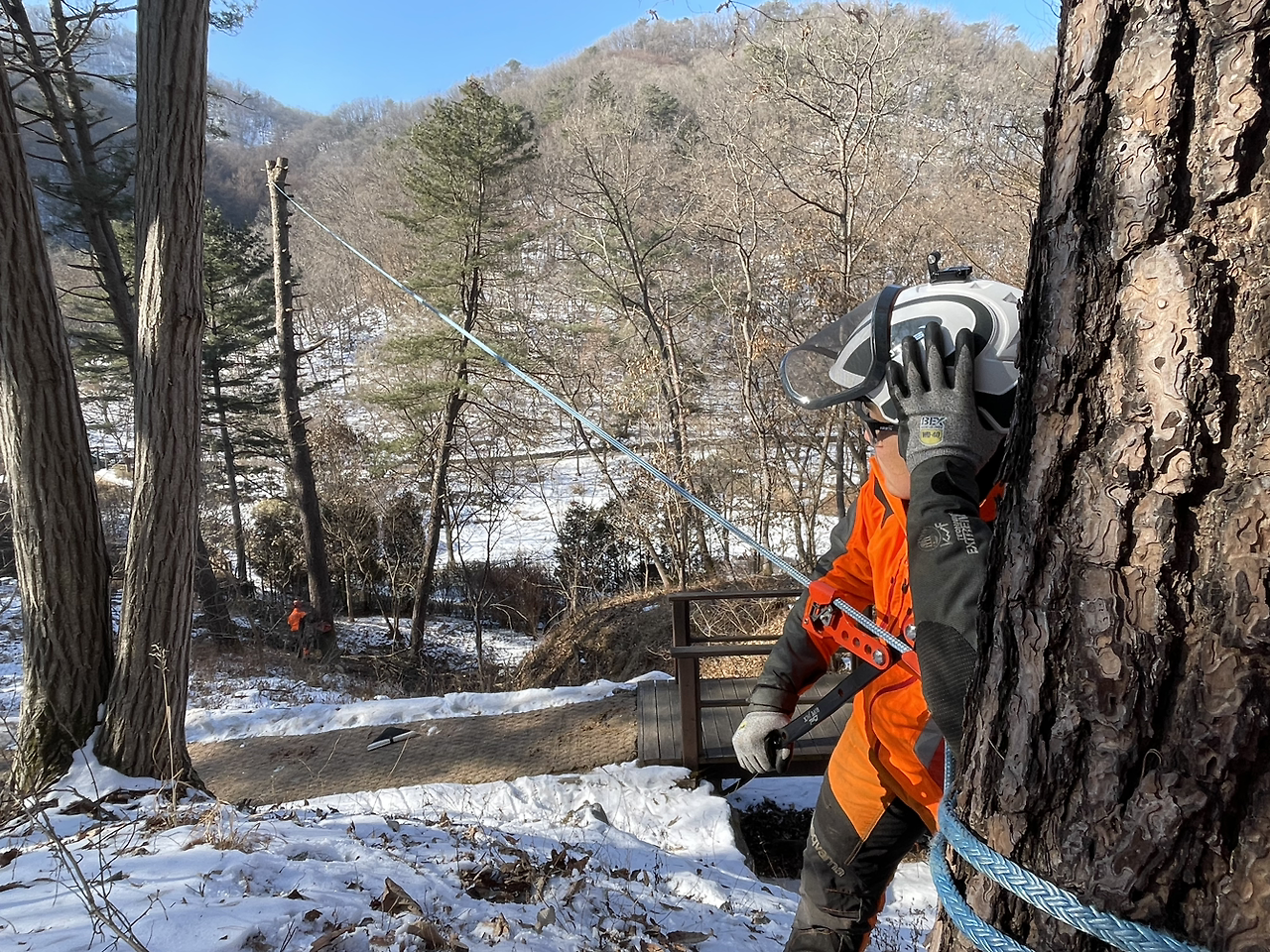 로프는 섬유재질과 구조에 따라 강도가 달라진다. 재질과 구조를 달리하는 조합으로 시중에는 다양한 로프가 출시되고 있다. 상대적으로 산업용과 비교했을 때 수목용 리깅로프는 비싸다. 그래서 우리나라 현장에서는 주로 쉽게 구할 수 있고 저렴한 PP로프를 사용한다. 물론 가격이 비싸다고 무조건 좋은 물건이라 말하기 어렵다. 그렇지만 작업 간 로프가 온전히 나무 무게를 버텨야 하는 상황에서는 다르다. 그때는 반드시 전용 로프를 사용해 안전을 확보해야 한다.